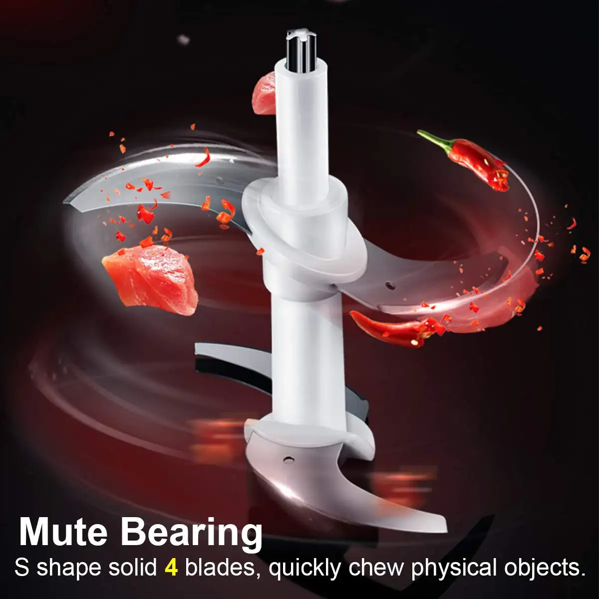 Простота в эксплуатации:1. Установите режущую головку. Поместите нож для резки в центр прозрачной чашки.2. Положите в еду. Положите фарш в чашку.3. Установите мейнфрейм. Чехол с крышкой. Положите голову на крышку чашки.4. Подключите источник питания. Нажмите на переключатель. Измельчите еду по требованию.