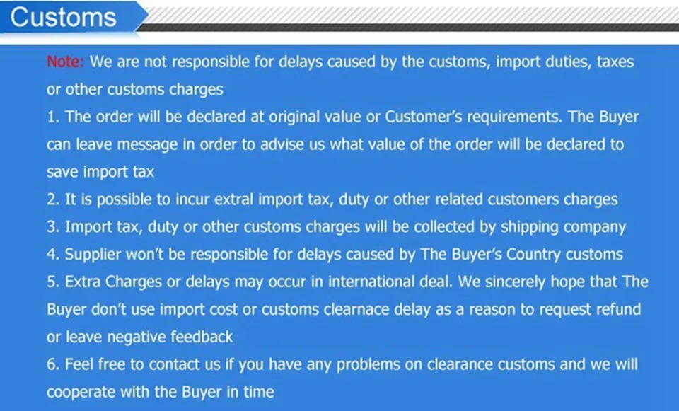 4. Цена не включает в себя какие-либо расходы по месту назначения, такие как тариф, НДС, плата за хранение, плата за удаленную отправку и т. д.