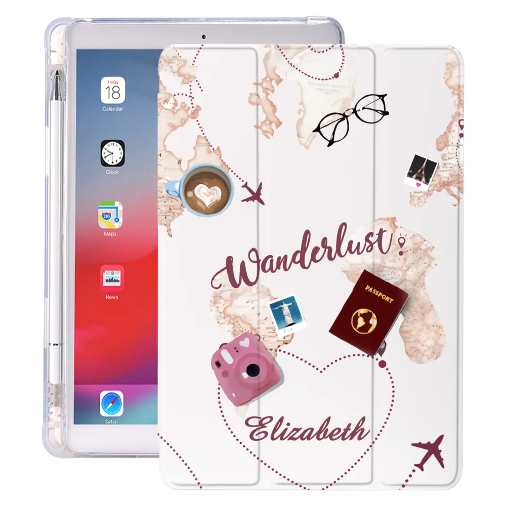 Чехол сделай сам для iPad с именем для путешествий, чехол для iPad Air 4 с держателем для карандашей 10,2 8th 7th Air 2 Funda 12,9 Pro 11 2020 Mini 5, чехол 10,5