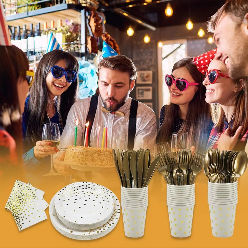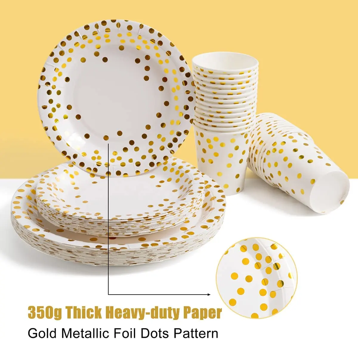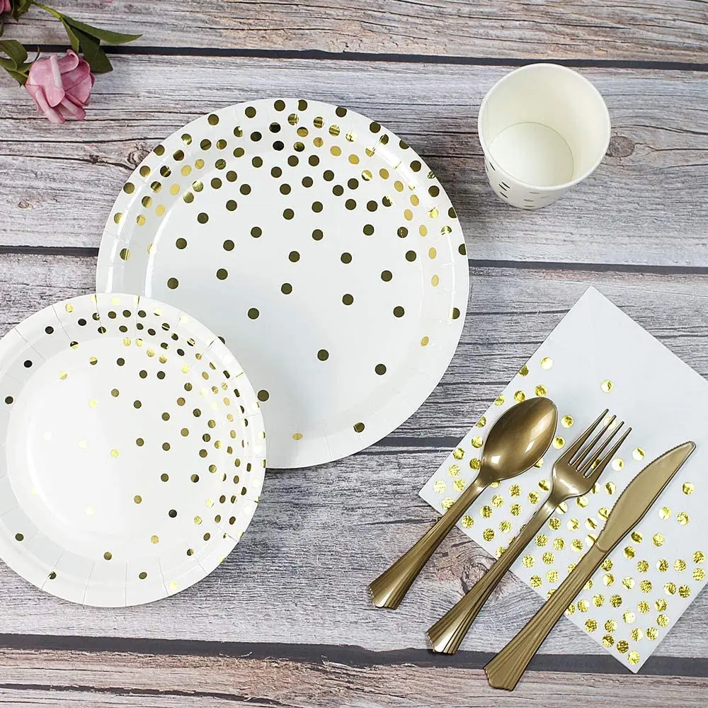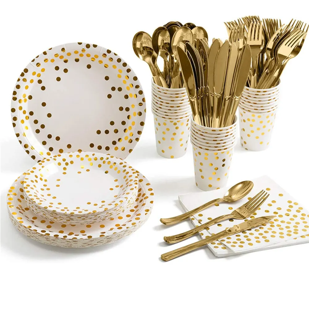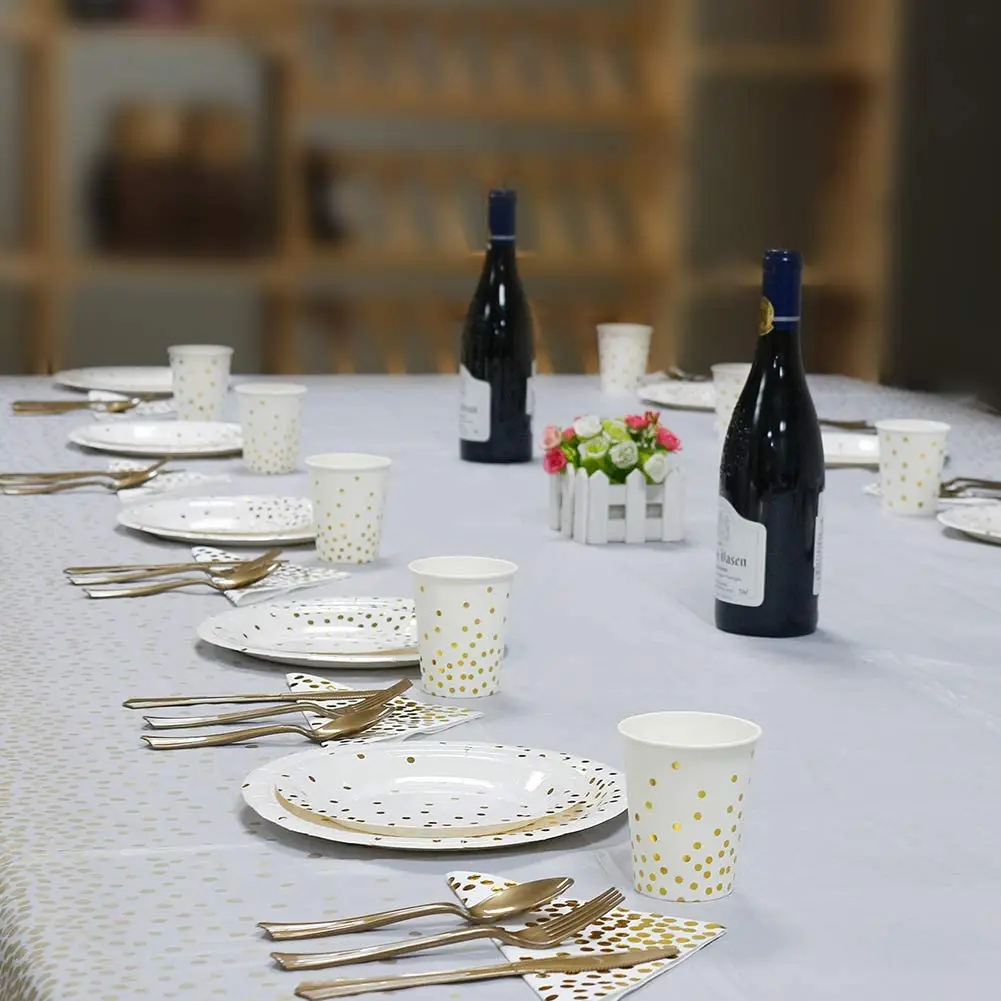 Набор посуды из белого золота, одноразовые тарелки, чашки, скатерть, для свадьбы, дня рождения, вечевечерние НКИ, детского праздника