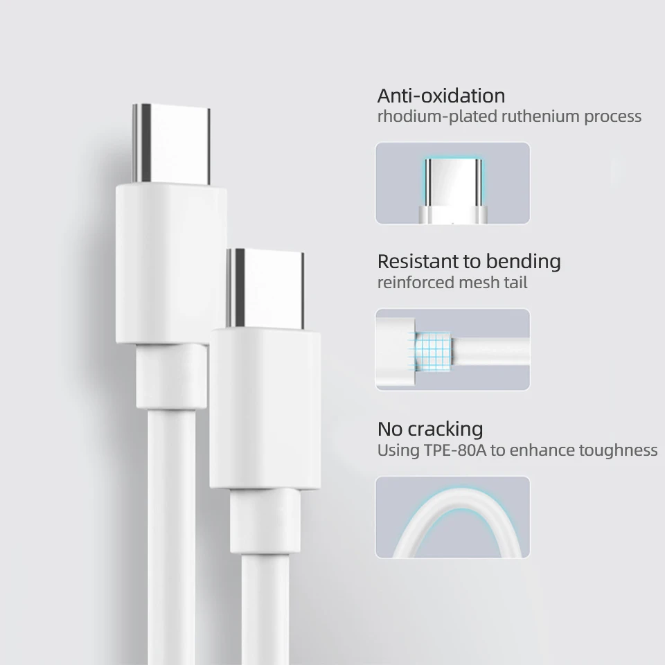 Есть два варианта:1. Кабель USB C-USB A (6A)2. Кабель USB C-USB C (5A)*** Пожалуйста, подтвердите ваш интерфейс зарядного устройства, а затем покупайте внимательно,