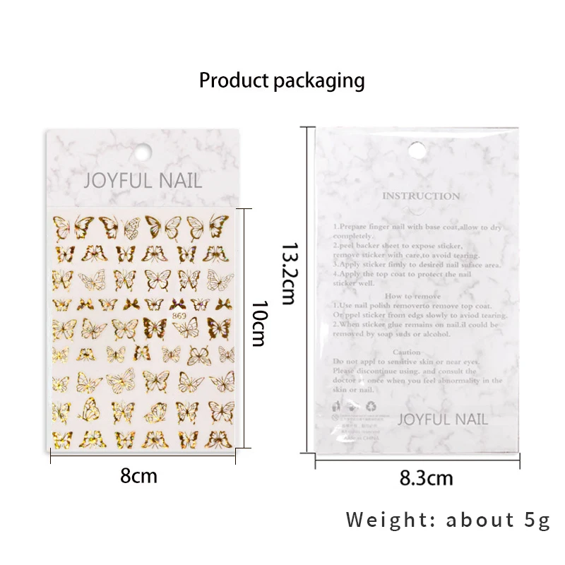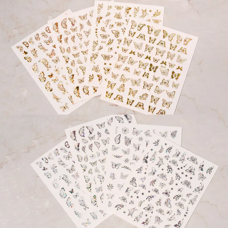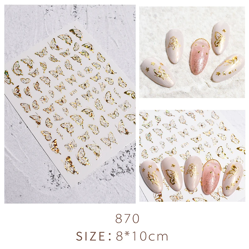 3D наклейки для дизайна ногтей, бронзовые бабочки, клейкие слайдеры, наклейки для ногтей, лазерная пленка наклейки на ногти бабочки, украшения для ногтей