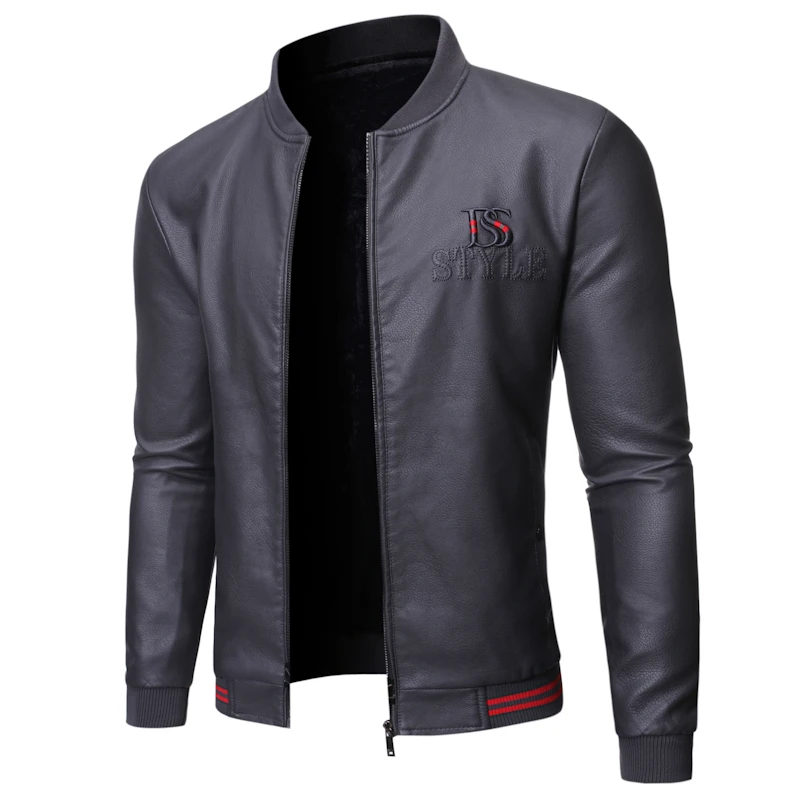 Мужская кожаная куртка на молнии, с воротником-стойкой и вышивкой