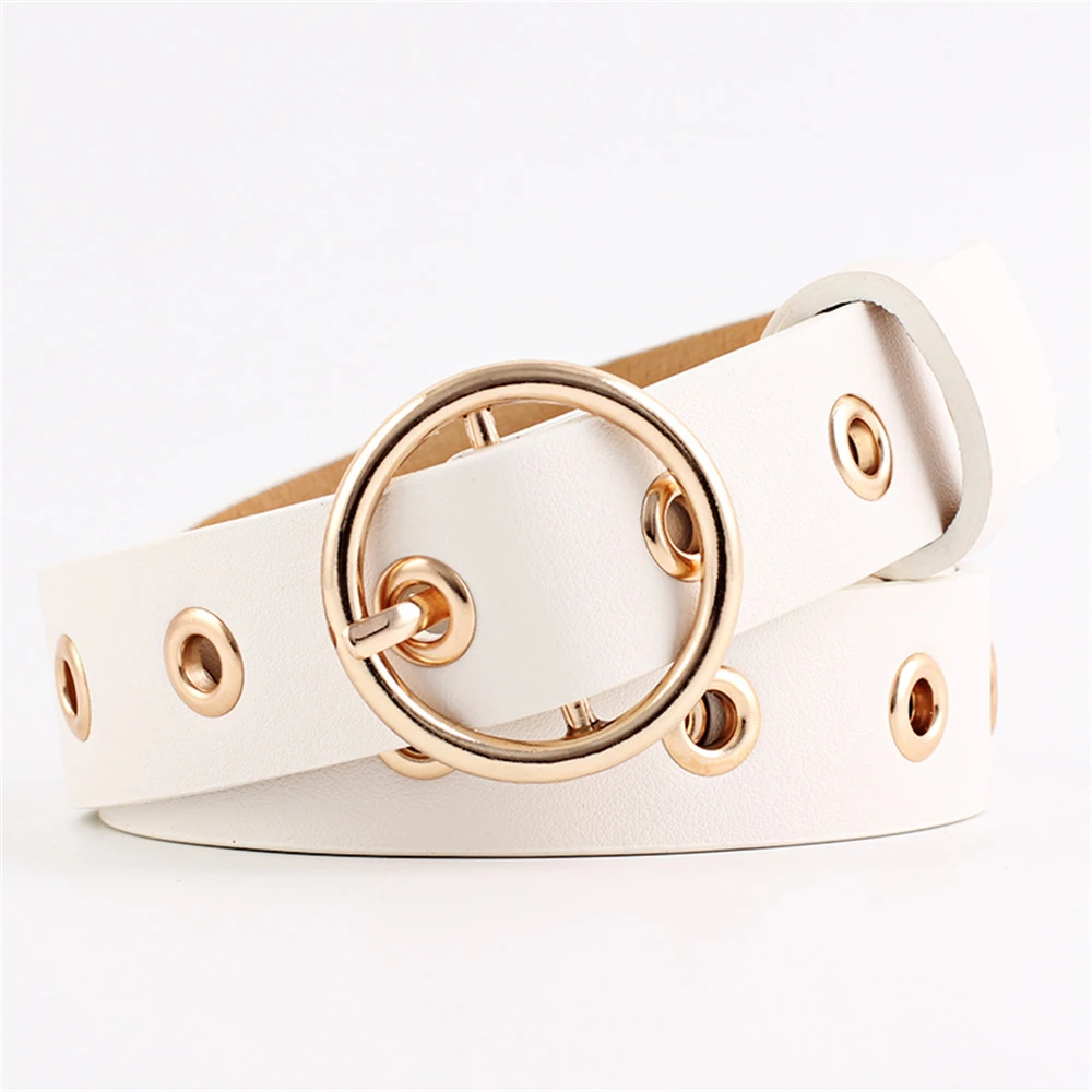 Ремень женский кожаный с круглой пряжкой, черный, розовый, белый, синий, красный