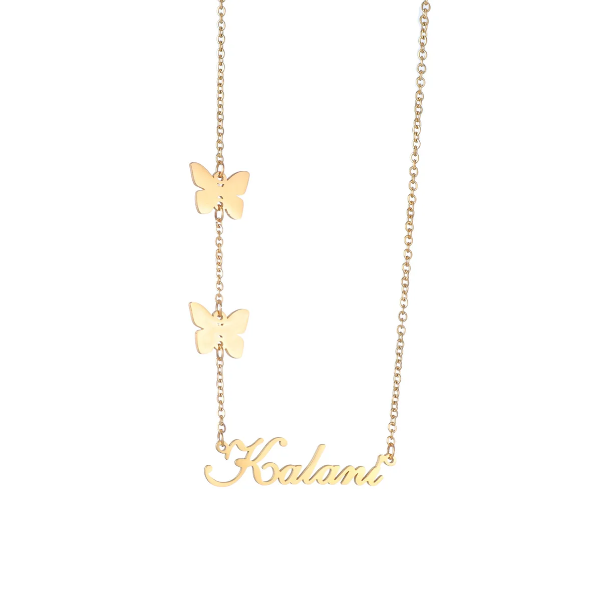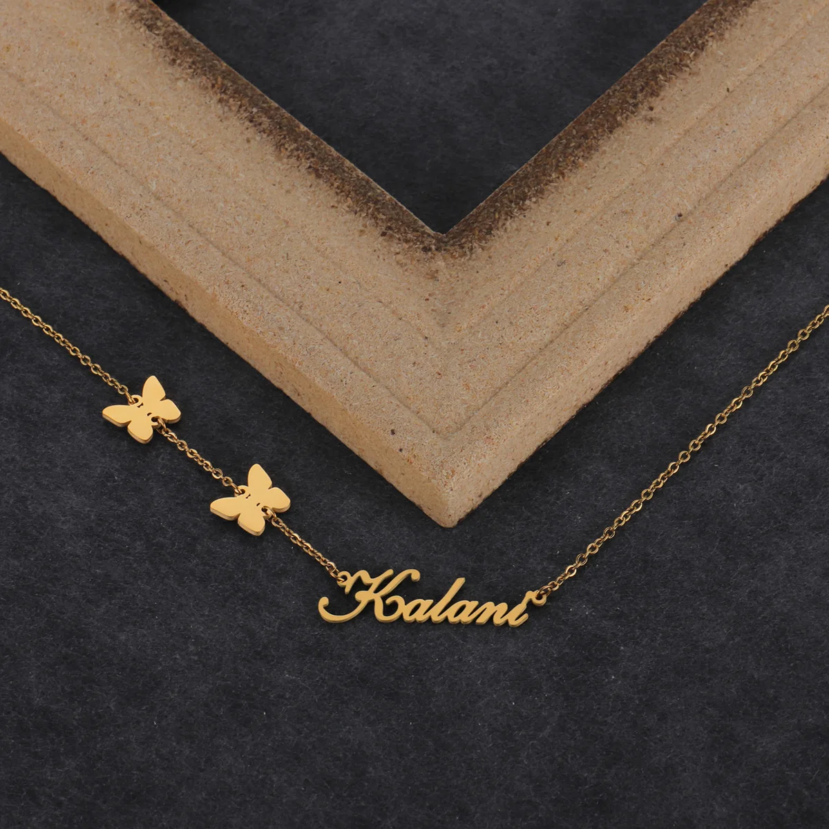 Романтическое ожерелье с двойной бабочкой на цепочке ожерелье из нержавеющей стали с индивидуальной табличкой с подвесками ожерелья персонализированные для женщин ювелирные изделия