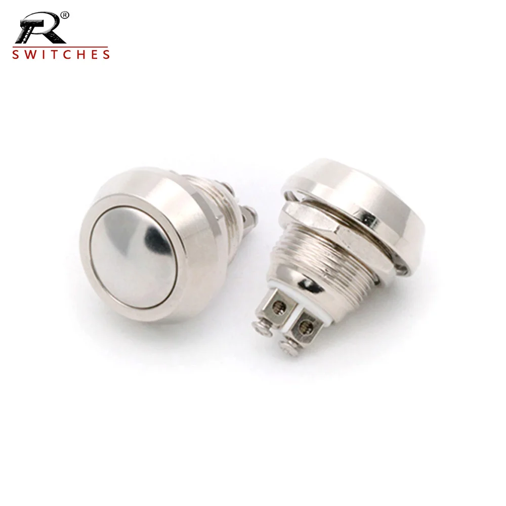 10 шт. 12 мм металлический Серебряный контакт Сферический самоблокирующийся винт кнопочный переключатель Нажмите Через 2pin водонепроницаемый автомобильный звонок рожок