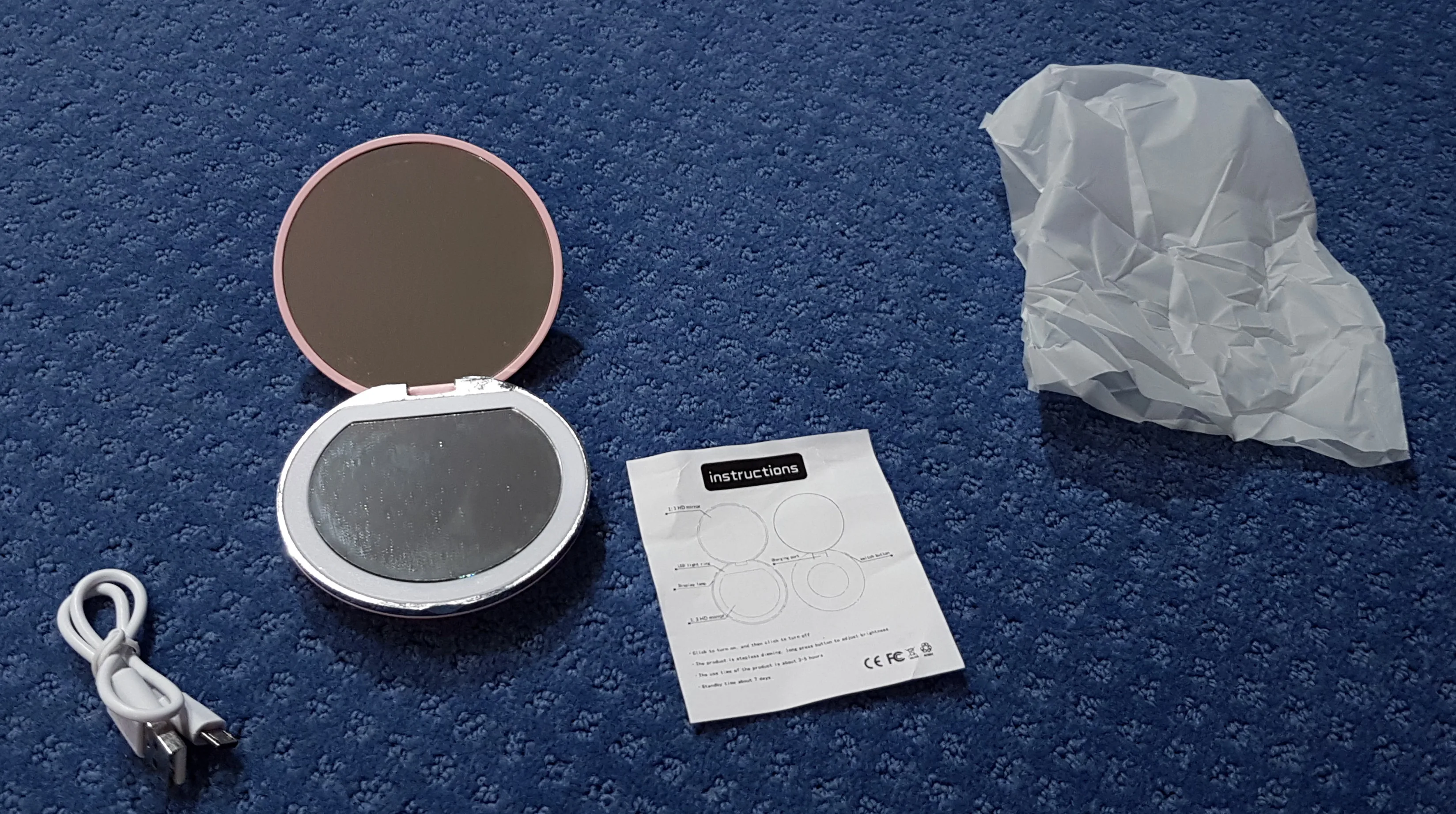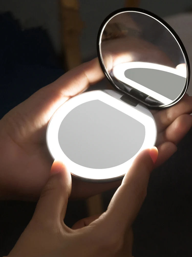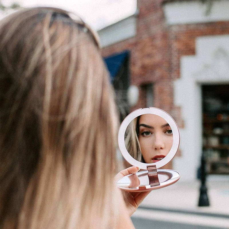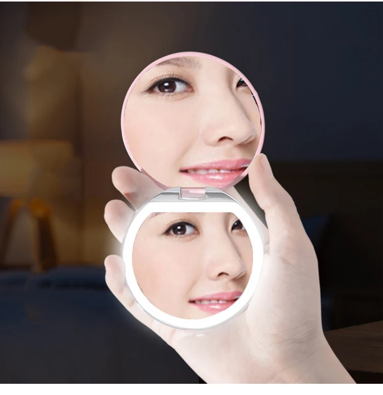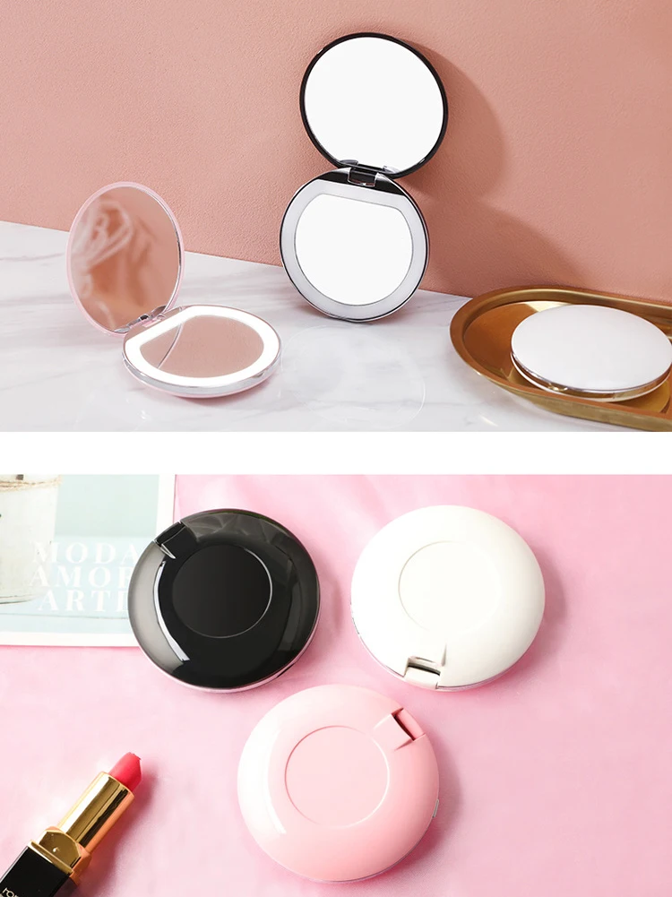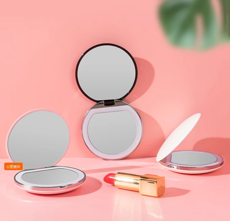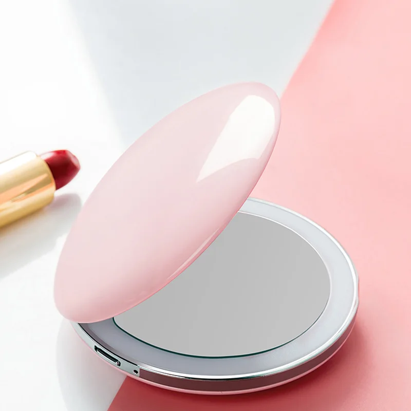 Увеличительное зеркало 3X с подсветкой, 5 цветов, мини круглое портативное светодиодное зеркало для макияжа, зеркала для макияжа с зарядкой от USB