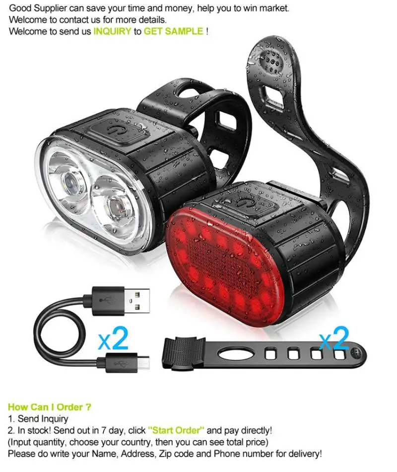 2. Безопасный и видимый: супер яркий комплект передних и задних велосипедных огней безопасен и виден.