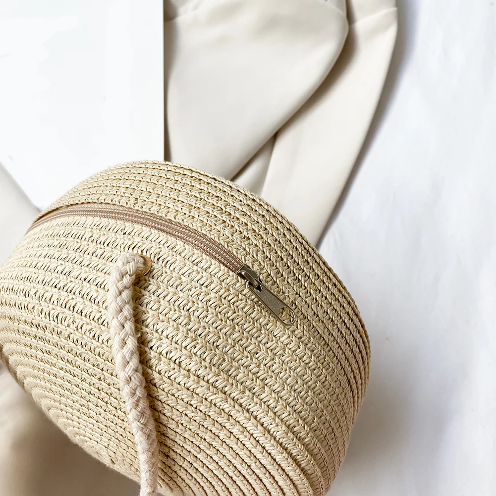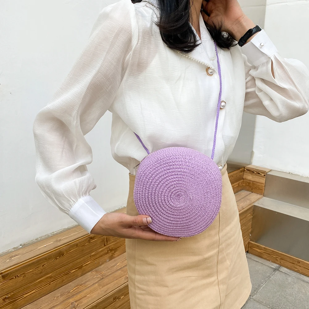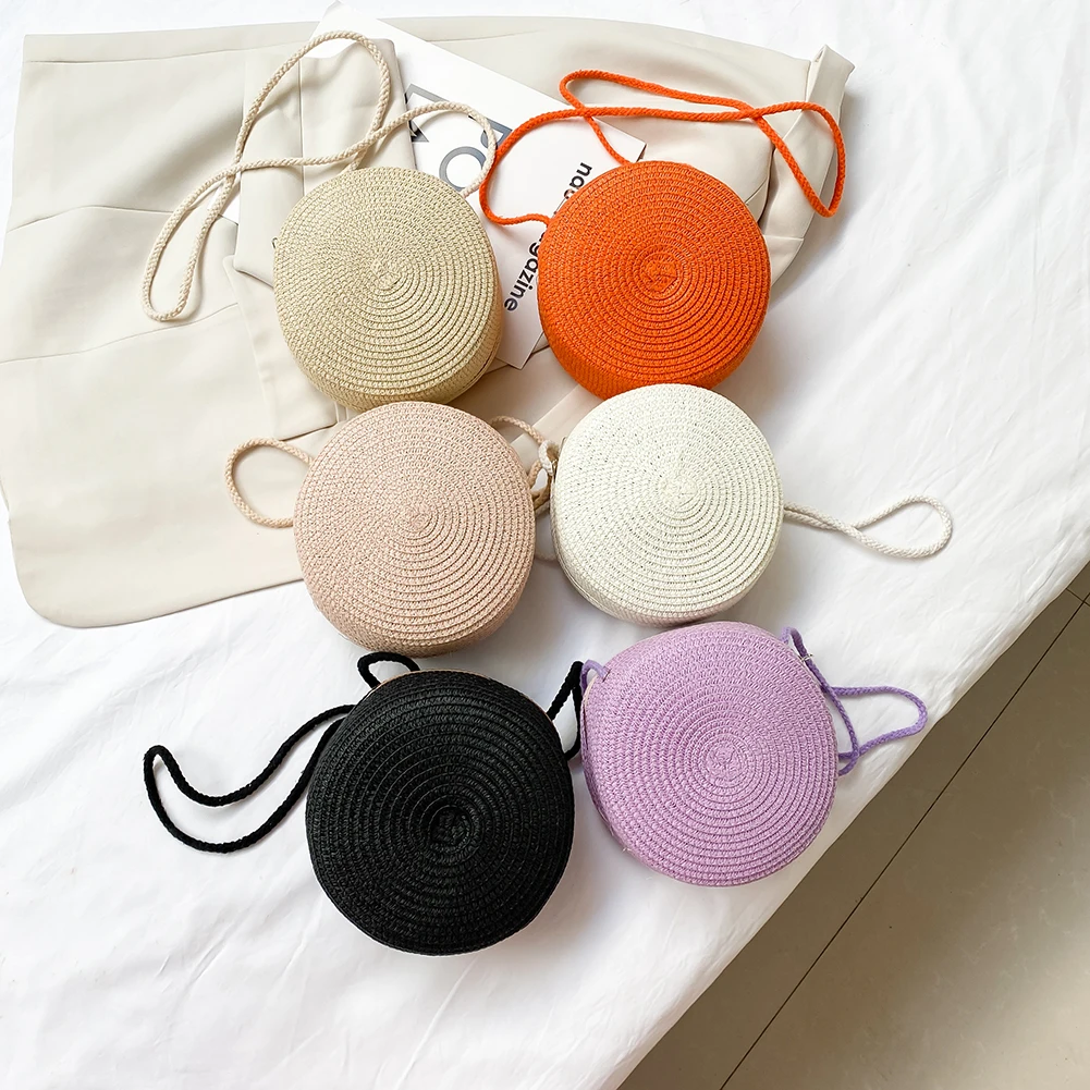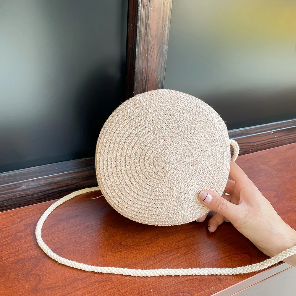 Сумки на плечо, круглые сумки, повседневные сумки, винтажные женские тканые однотонные сумки на плечо, женские пляжные круглые сумки через плечо