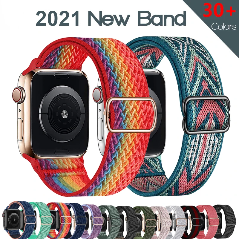 Ремешок регулируемый для Apple watch band 40 мм 44 мм 41 мм 45 мм 42 мм 38 мм, нейлоновый эластичный соло-браслет для iWatch 3 4 5 6 se 7