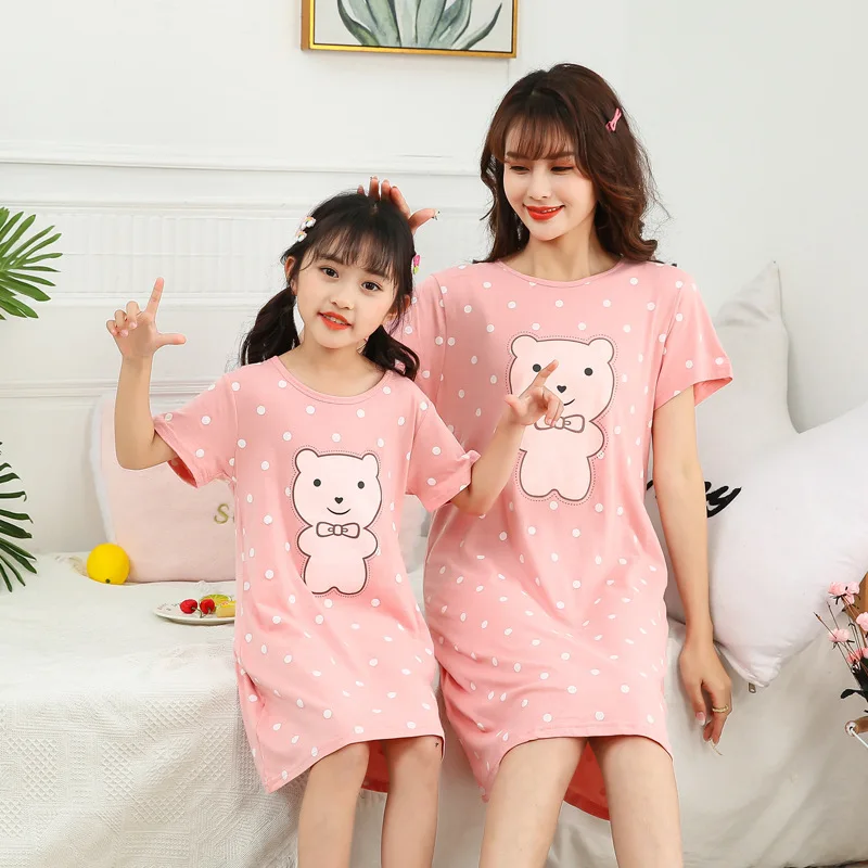 Летнее платье для матери и дочери, пижама с коротким рукавом, 100% ...