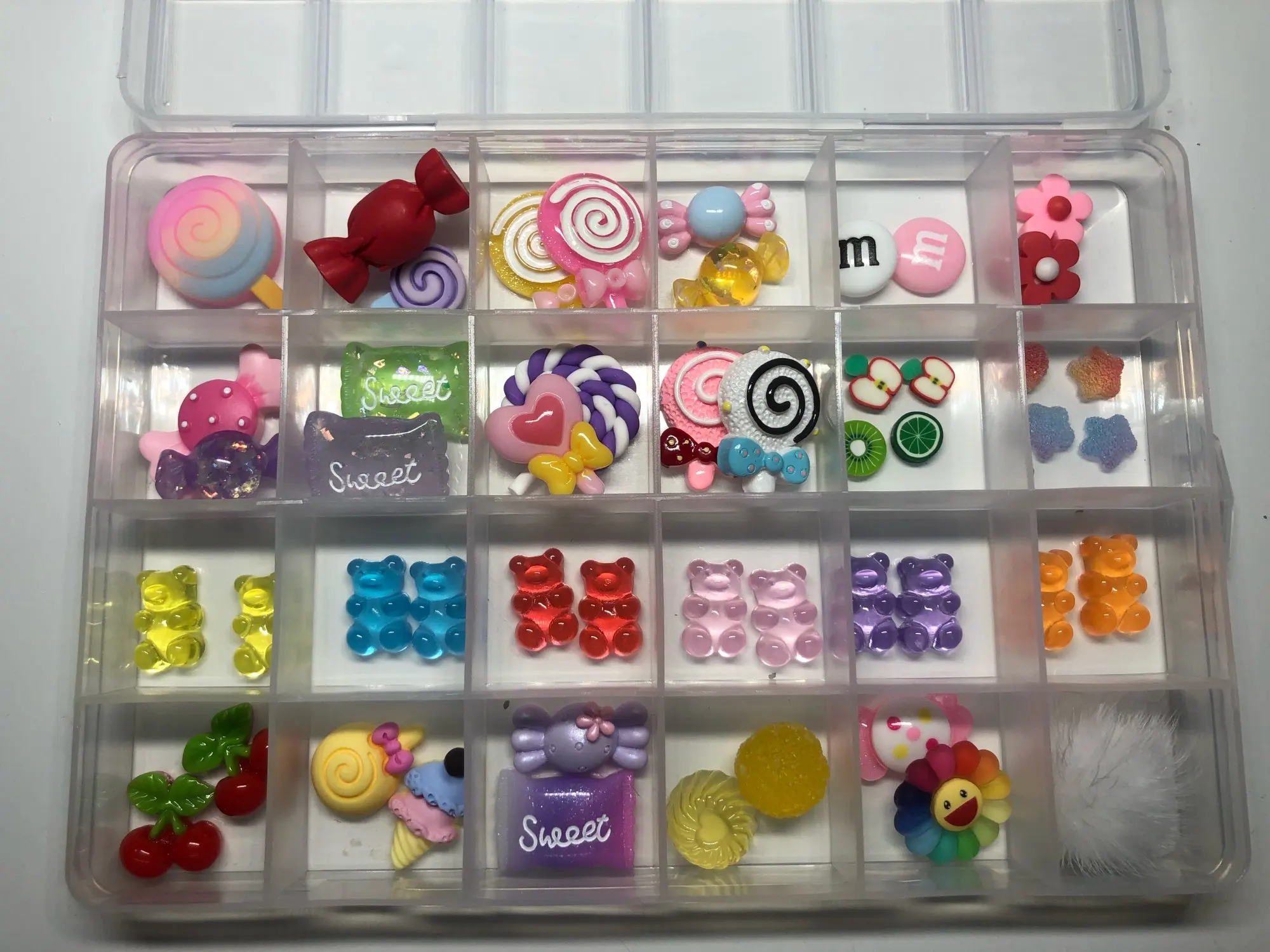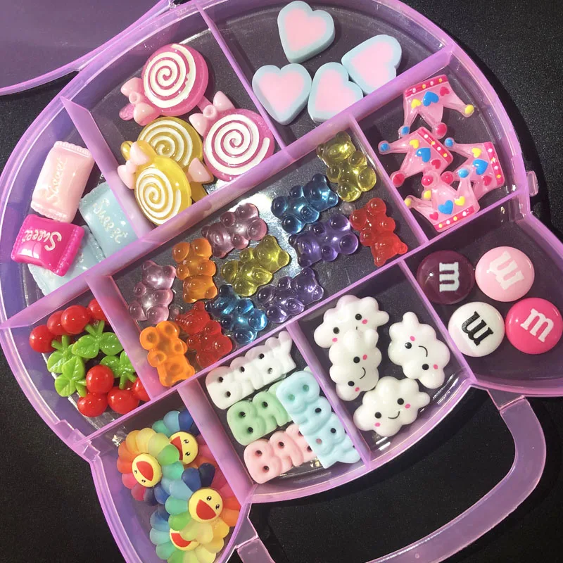 24/50 шт в наборе Kawaii Смола Gummy медведя микс конфеты для обучения нанесению акрила для Неил арта украшения для кончиков ногтей украшение в центре сообщений в течение 24 Сетка Коробка ногтей Наклейка Шарм комплект B050(A)