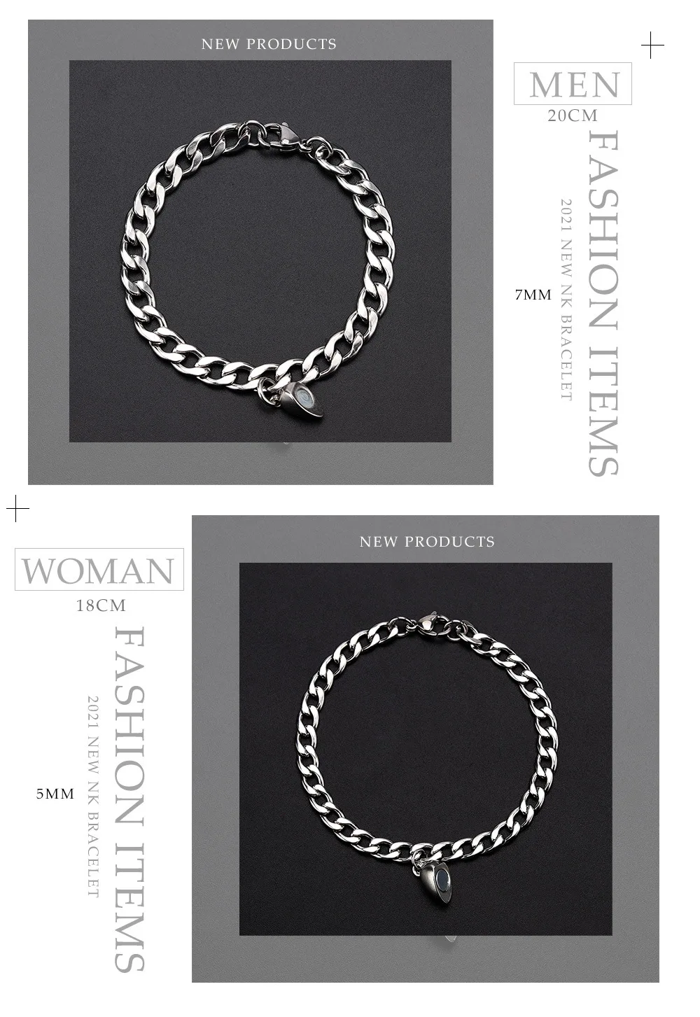 Парные браслеты из нержавеющей стали шт.пара, браслет с подвеской в виде сердца, кубинский стиль цепи NK, ювелирные изделия, подарок для женщин и мужчин