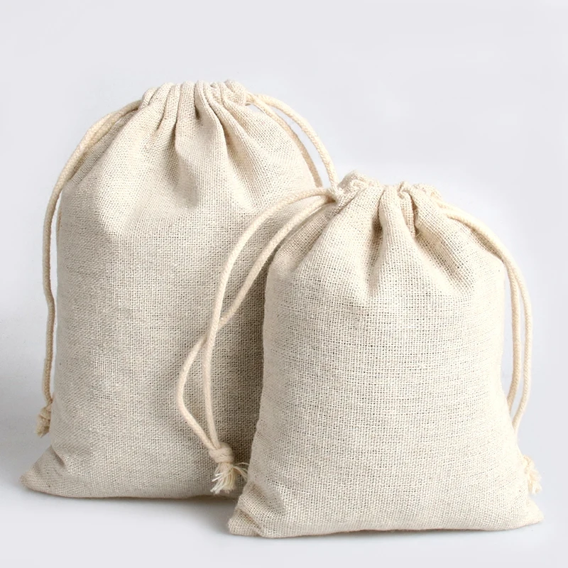 10 шт.лот белая бежевая льняная упаковка на шнурке сумка для хранен...