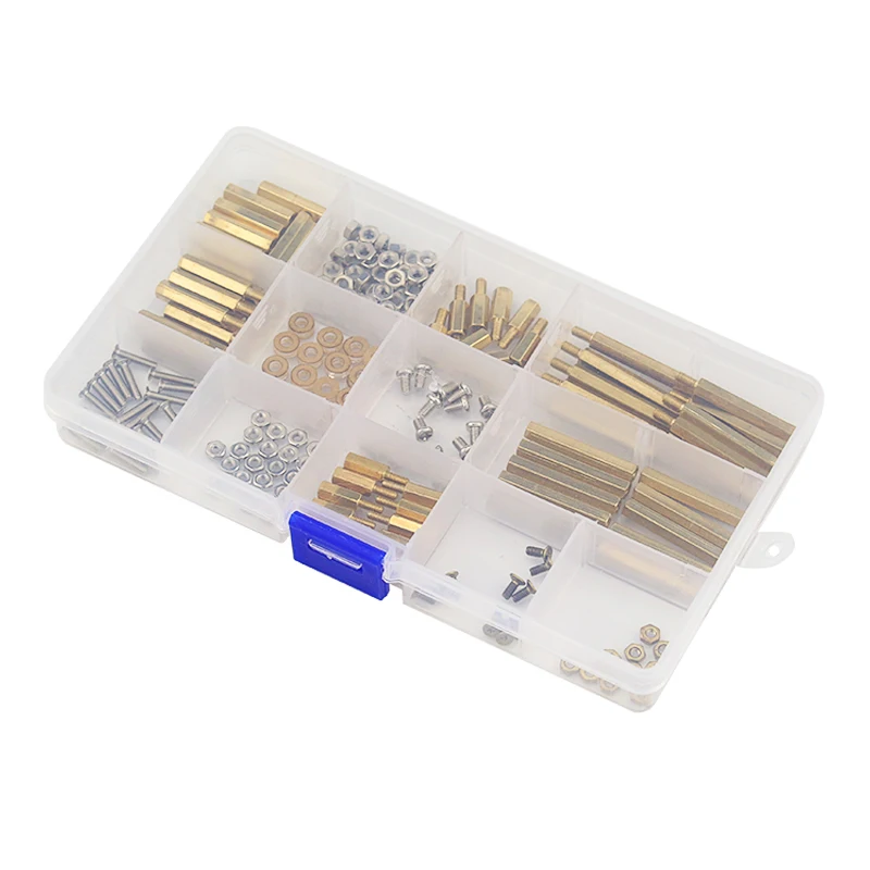 Характеристика:1, M2.5 резьбовой шестигранный Мужской-Женский латунный противостояние/нержавеющая сталь винт гайка Ассортимент Комплект.2, водонепроницаемый, устойчивый к ржавчине.3, ассорти в пластиковой коробке для удобной переноски и хранения.4, легко установить.5, прочный в использовании.6, для Raspberry-Pi или других проектов.