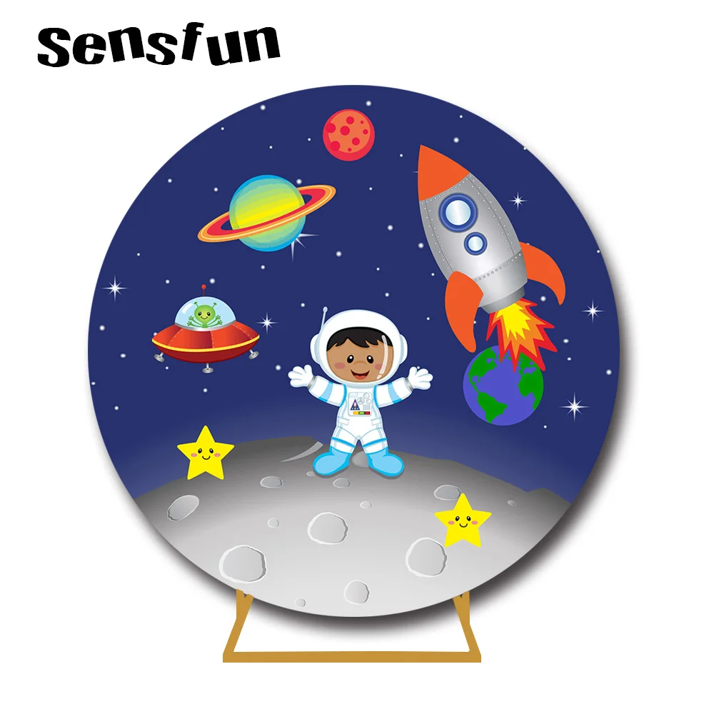 Фон для фотосъемки с изображением круга голубого космоса детского дня рождения планеты украшения галактики астронавта на Луну
