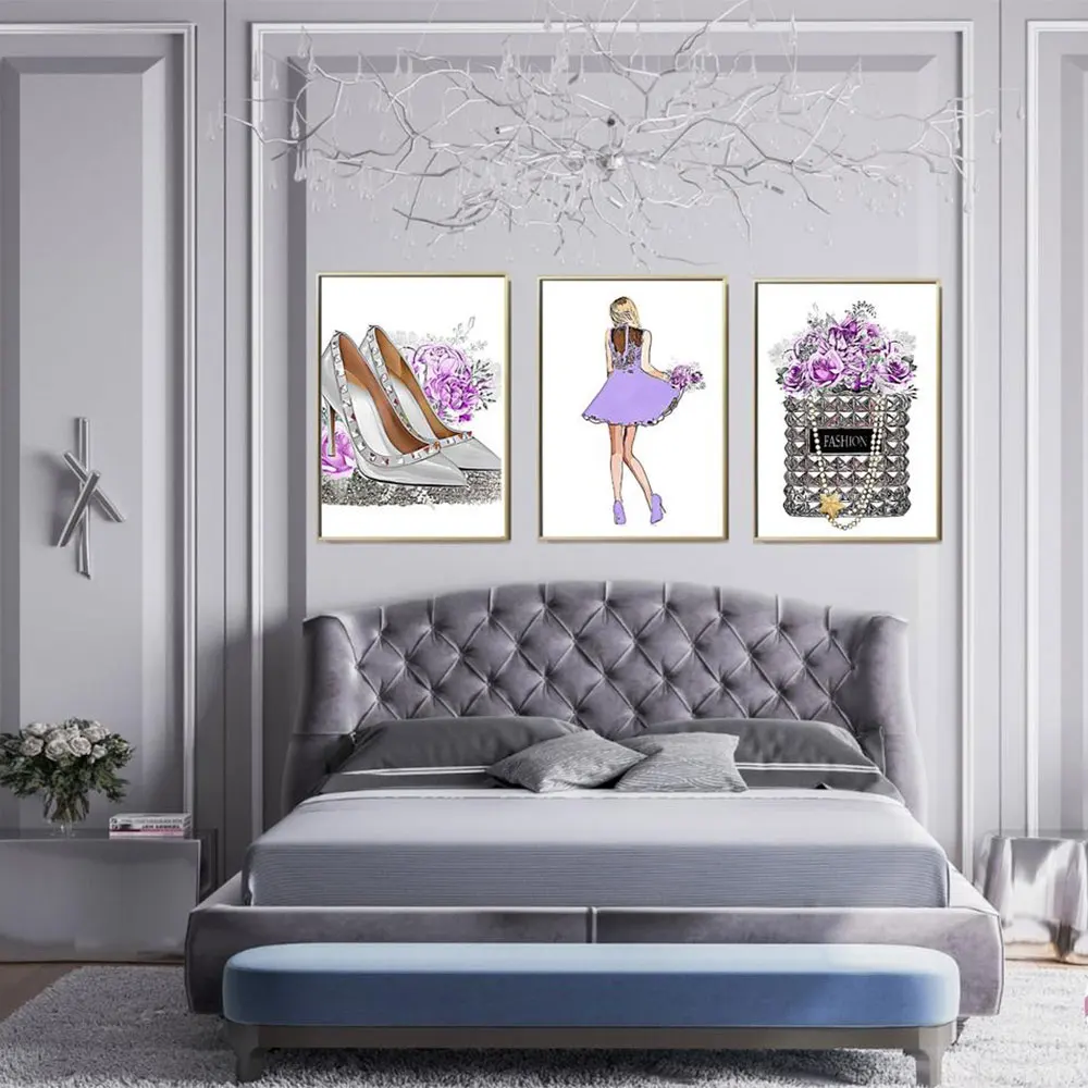 Lavendar парфюмерная Картина на холсте модные пятки цветы плакат и печать гламур девушка Настенная картина для гостиной домашний декор