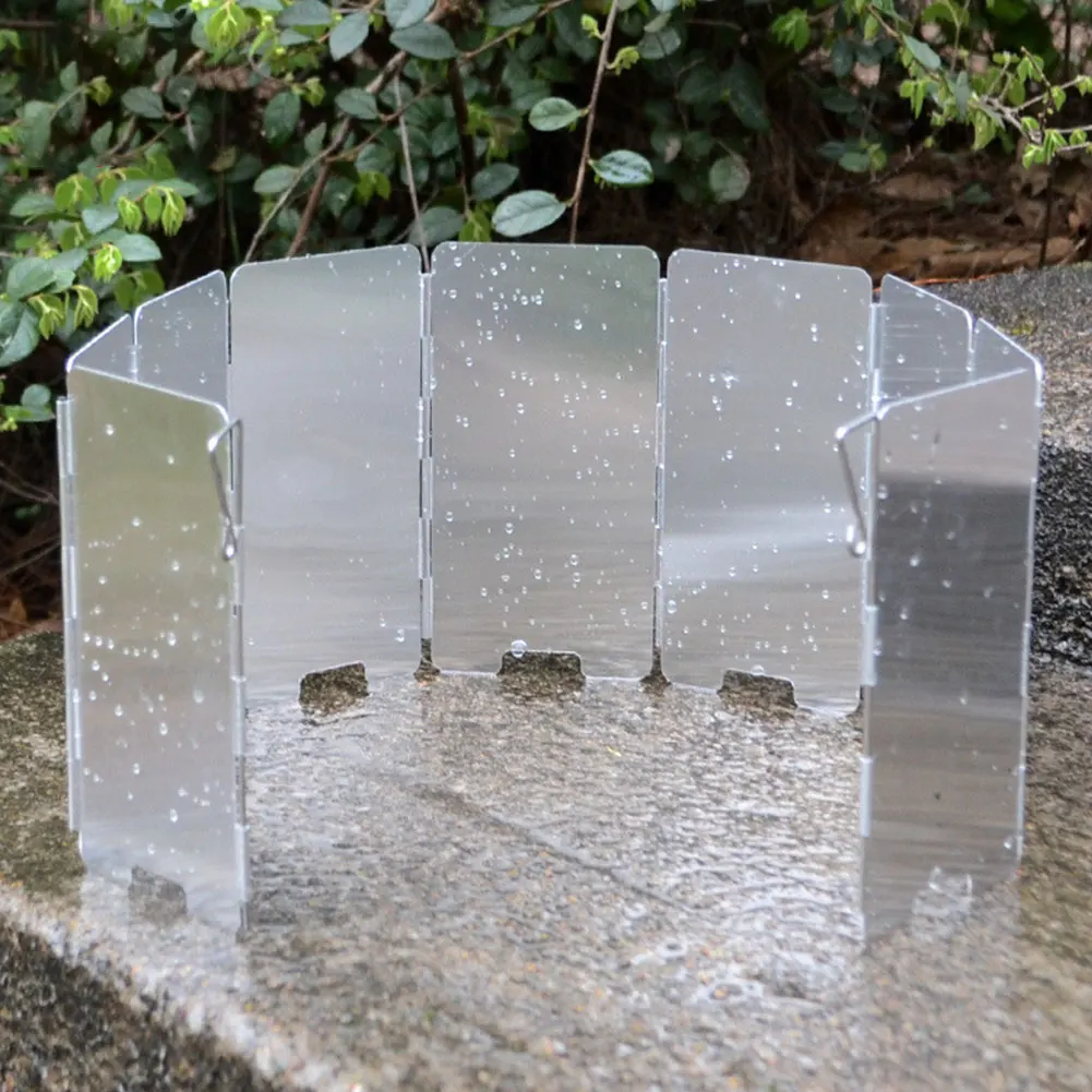 Ветровое стекло для кемпинговой плиты имеет большой вес и компактный, короткий и маленький, подходит для путешествий на дальние расстояния, что снижает вес рюкзака, складная конструкция из 9 предметов, И защелки на обоих концах. Ветровые экраны из алюминиевого сплава значительно экономят топливо и время, это поможет вам быстро разжечь огонь в ветреных условиях.