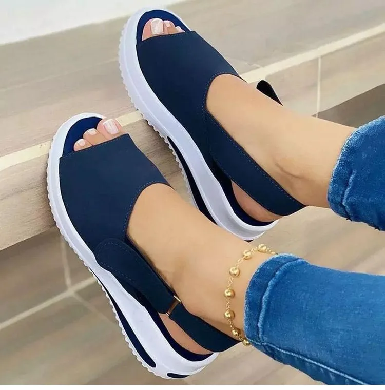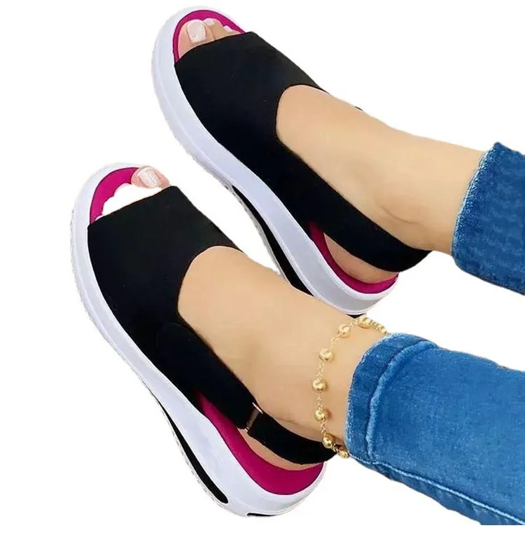 2022 женские босоножки на платформе; Летняя обувь из эластичной ткани; Женские удобные прогулочные сандалии; Повседневная женская обувь