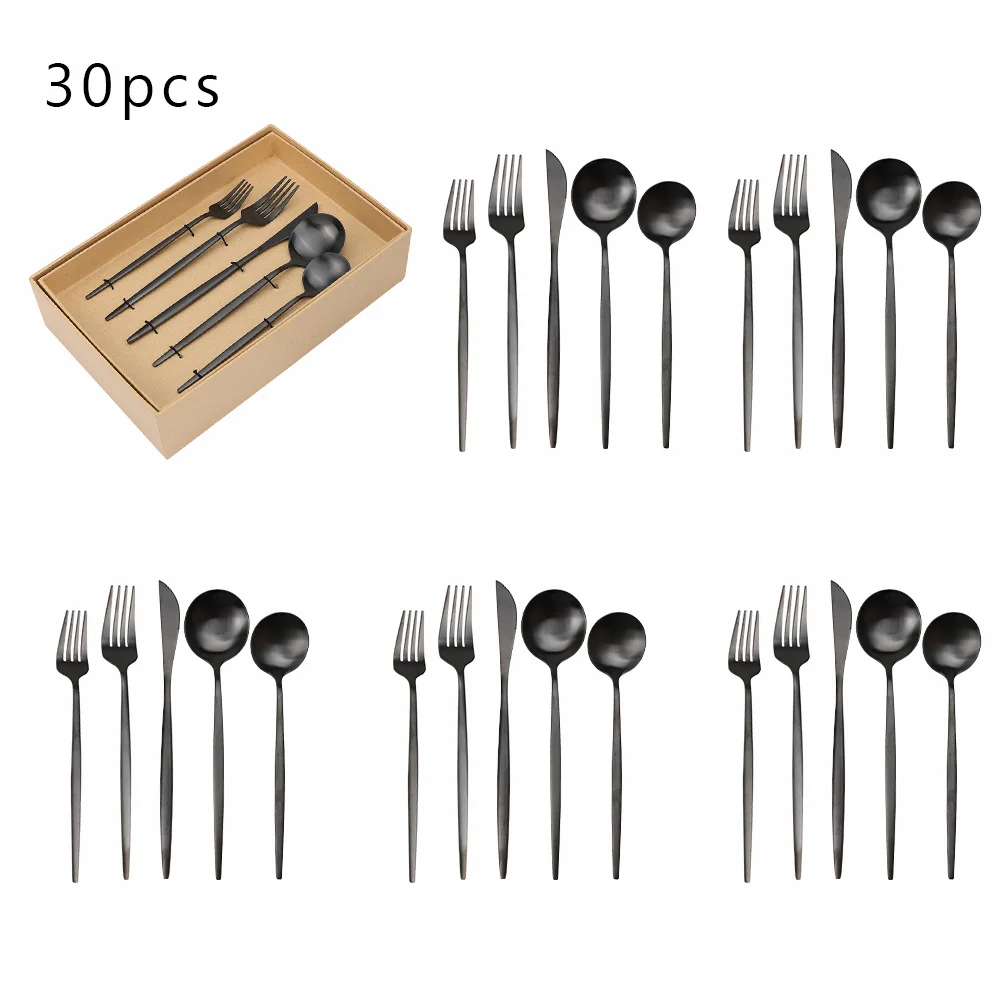 Набор столовых приборов для подарочных коробок на свадебную вечеринку, черный матовый прибор, вилкаложки комплекты ножей, 30 шт.