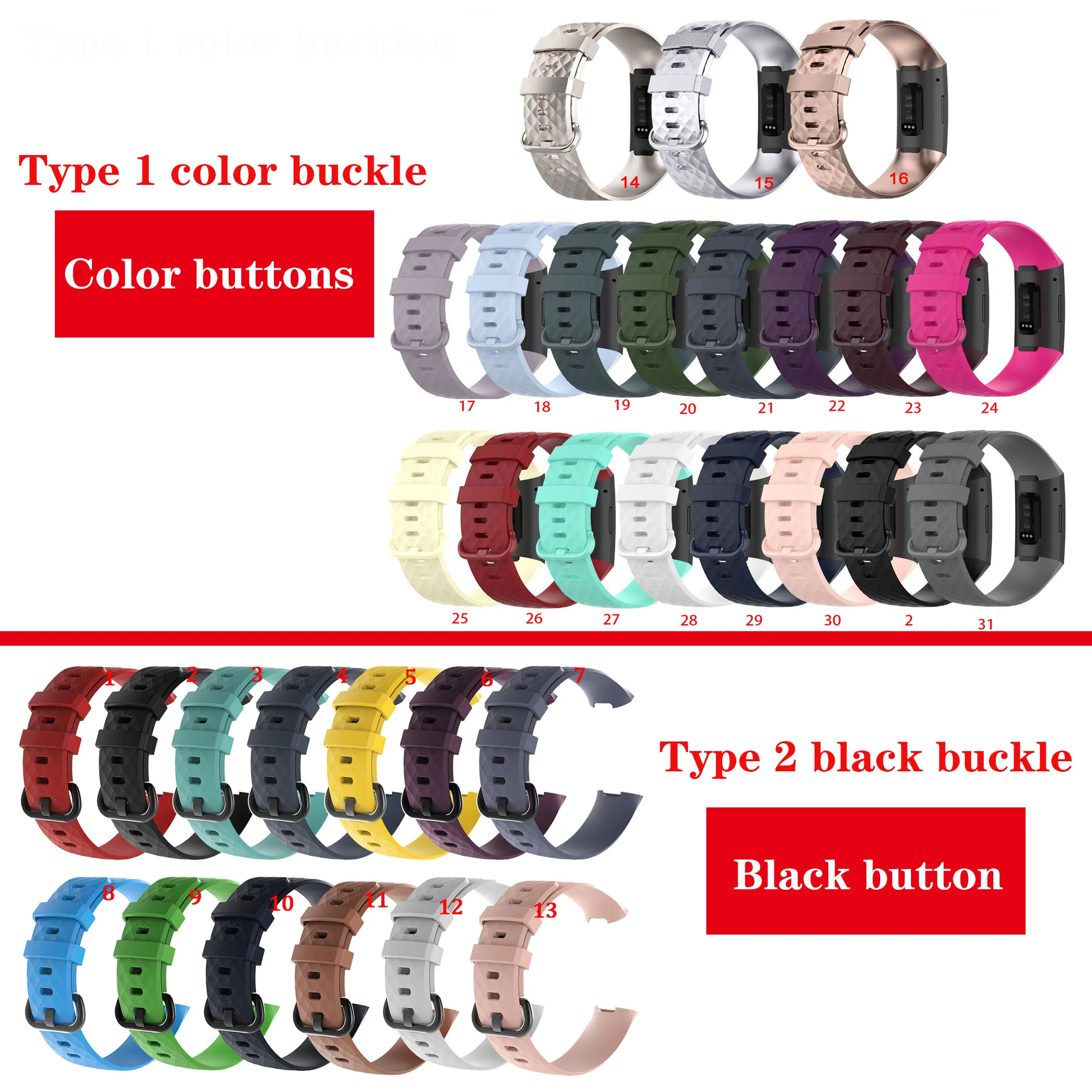 No.1-no.13-черные, с ремешками на пряжках; №14-no.31 является цвет пряжки