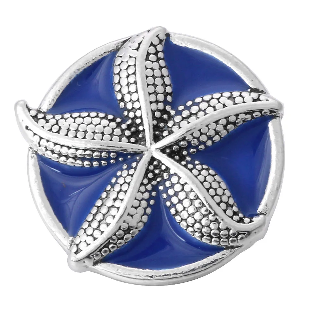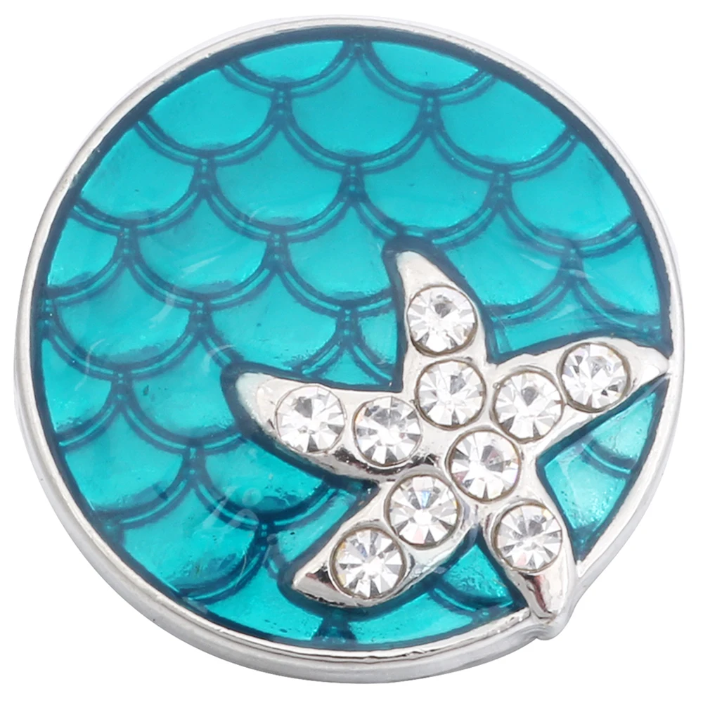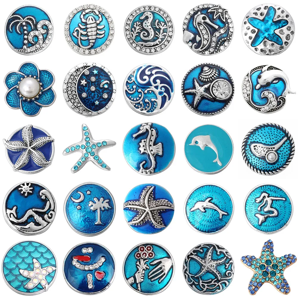 6 шт.лот ювелирные изделия 18 мм кнопки с синими стразами Морская звезда Дельфин Русалка защелки для кнопки браслета DIY аксессуары