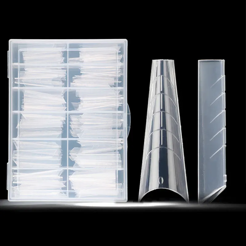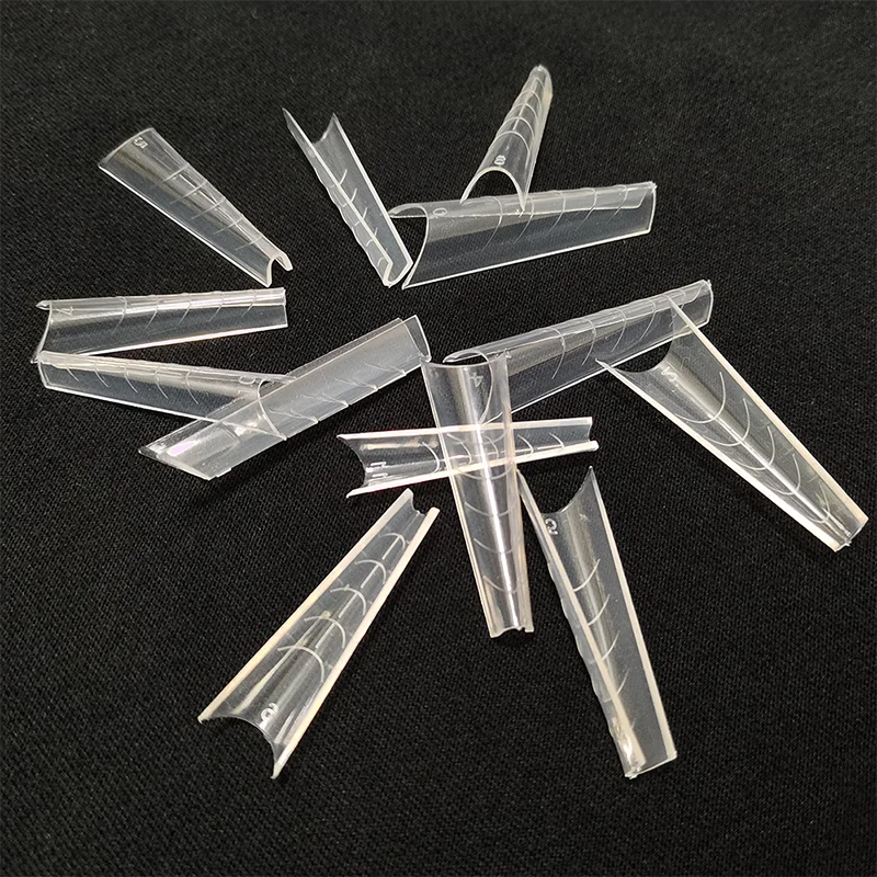 Перевернутые, многоразовые половинные покрытия-линия улыбки, чтобы свободные края двойные советы для создания современного гроба или русского миндалевидной формы наращивания ногтей. Половинное покрытие Двойные наконечники предназначены для ускорения нанесения акрилового геля для ногтей, что позволяет нанесению быть идеально на свободном краю, боковые стенки и нижние области свода с гладкой отделкой для наращивания ногтей на свободном кромке и минимальным заполнением в конце нанесения.