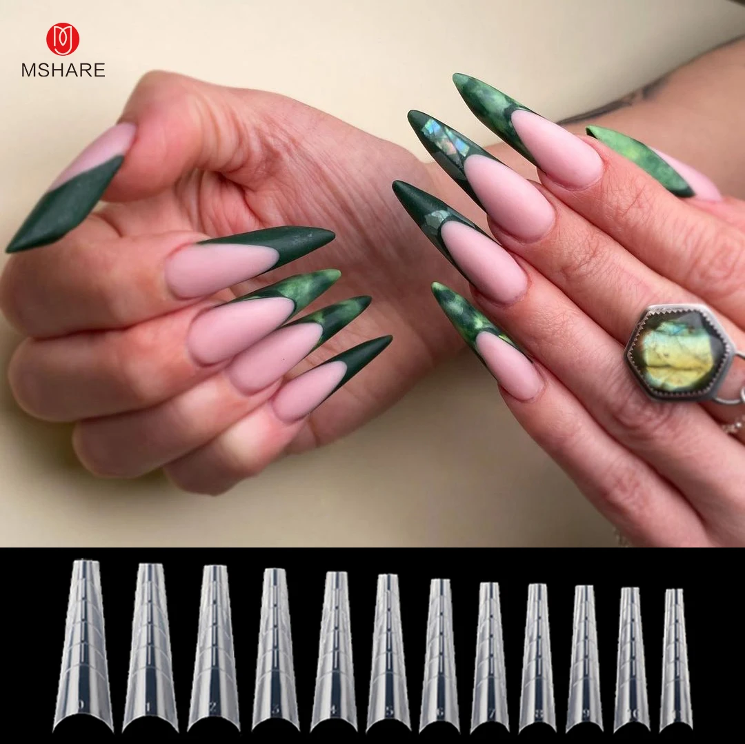 MSHARE русский миндаль Двойные наконечники гроб половина крышки формы для ногтей наконечник коробка 12 Размер 120 шт