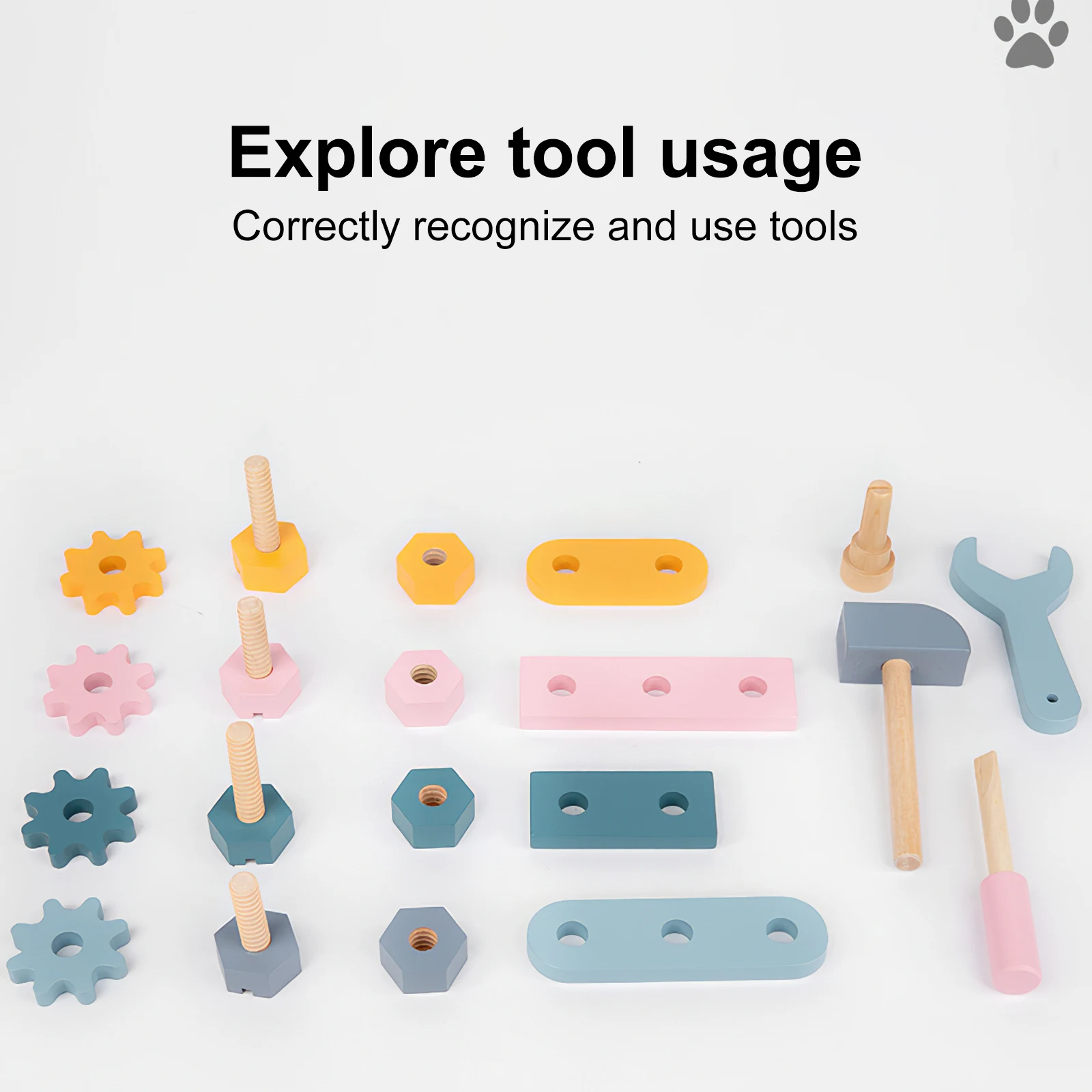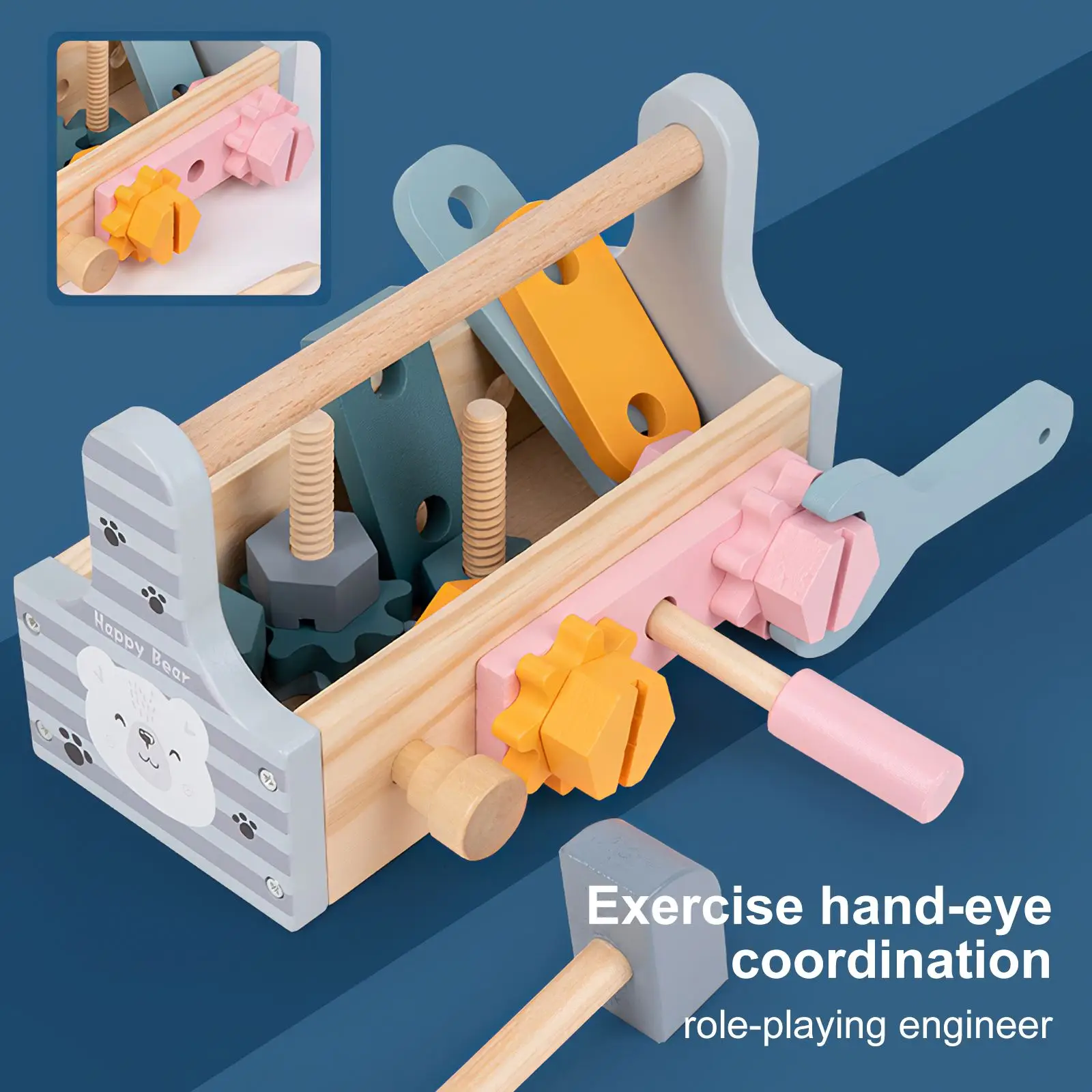 feature 8Wooden Screw Nut Hammer Tools Toy
