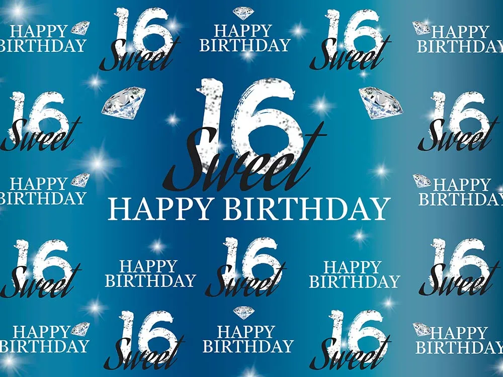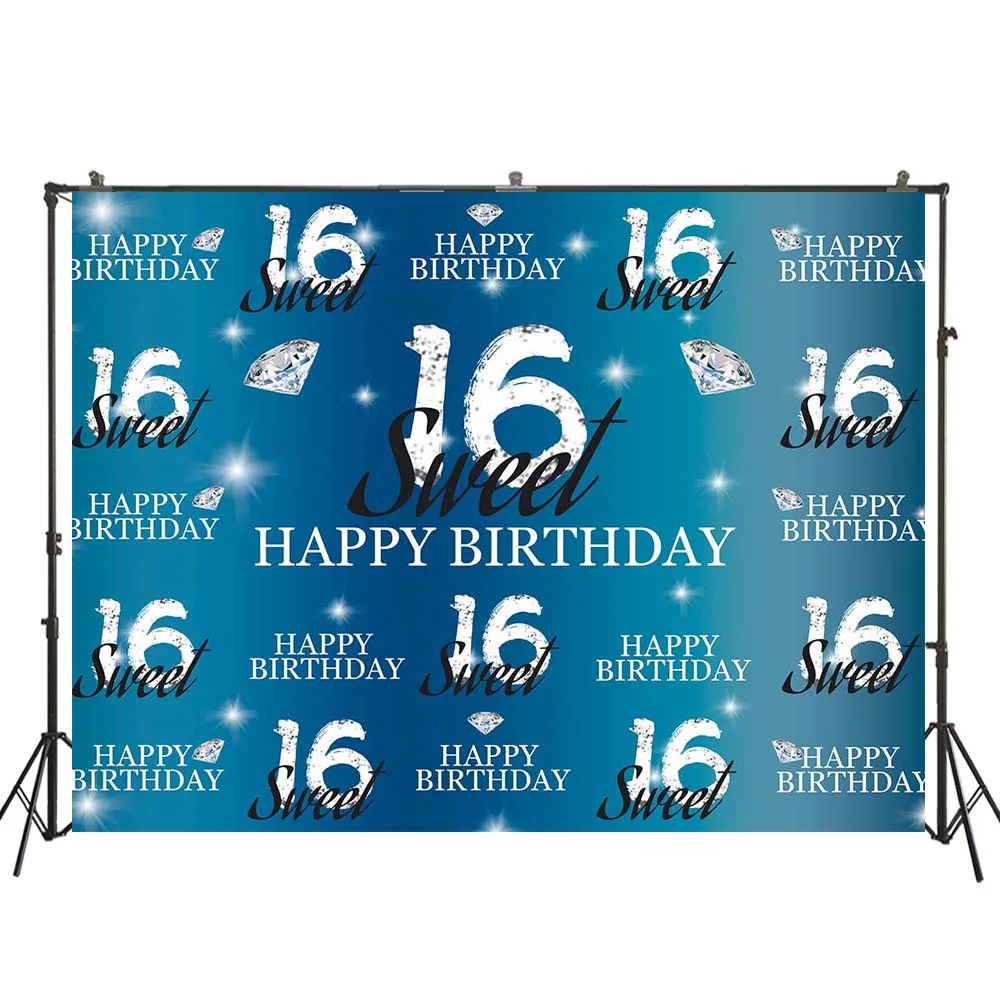 Синий Sweet 16 день рождения фон для фотосъемки с изображением шестнадцать День рождения фон Алмаз Декор десертного стола баннер из реквизитов участников W-5369