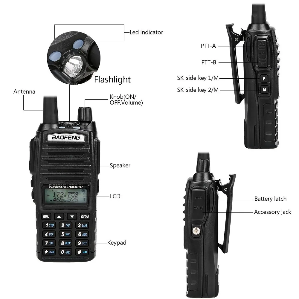 2 шт.лот BaoFeng UV-82 5 Вт UHF VHF Двухдиапазонный 136-174 и 400-520 МГц Любительское радио 2800 мАч батарея рация