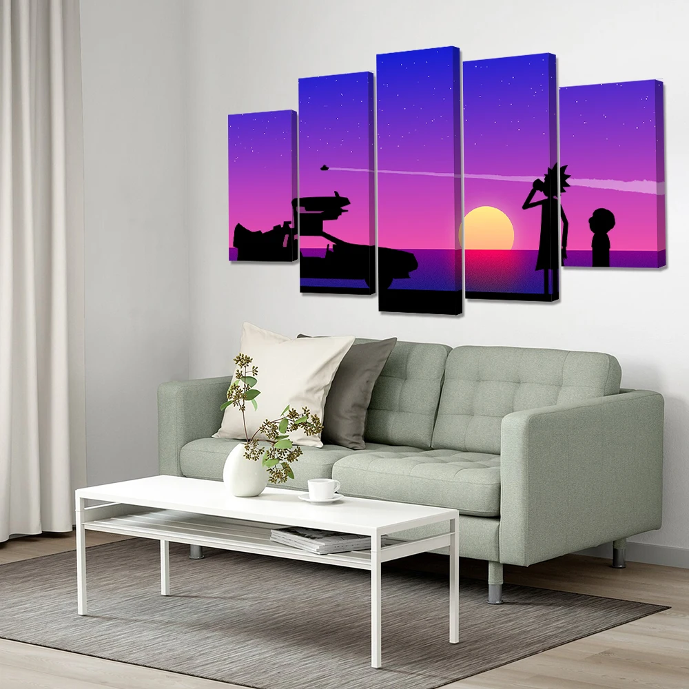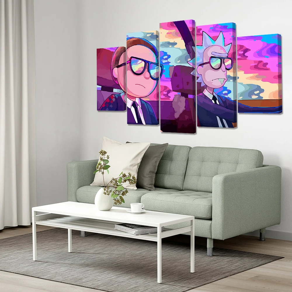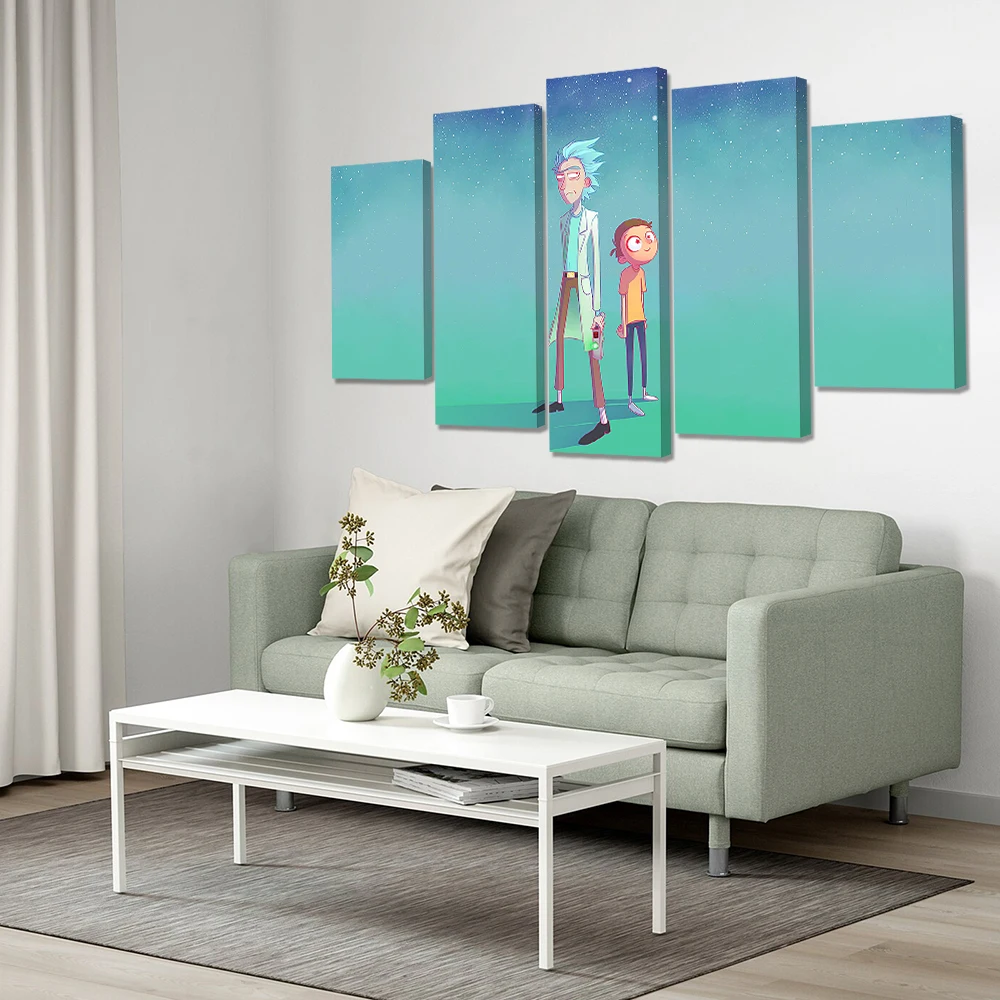 Картина с изображением Рика, Морти, модульная Картина на холсте, 5 панелей, аниме, ролевой плакат, прикроватный фон, рамка для домашнего декора