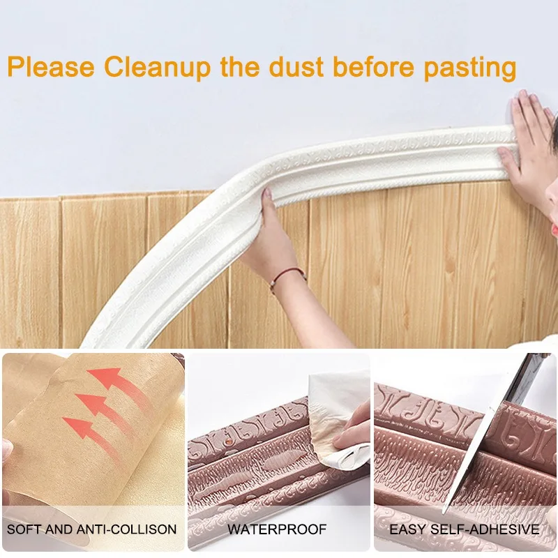 Самоклеящаяся 3D лента из пенопласта, рельефная угловая линия, водонепроницаемая декоративная наклейка на стену, 230x8 см