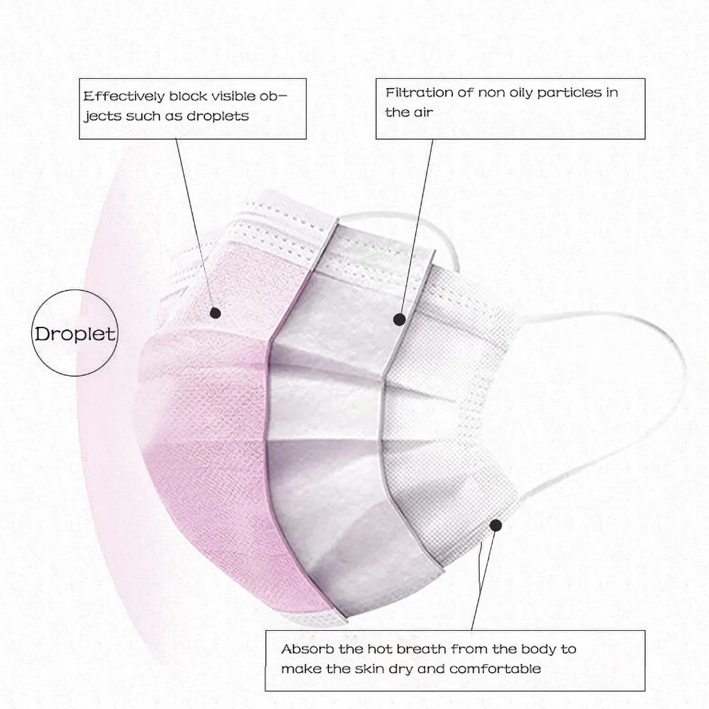 50 шт., одноразовые разноцветные маски для лица с ушными петлями