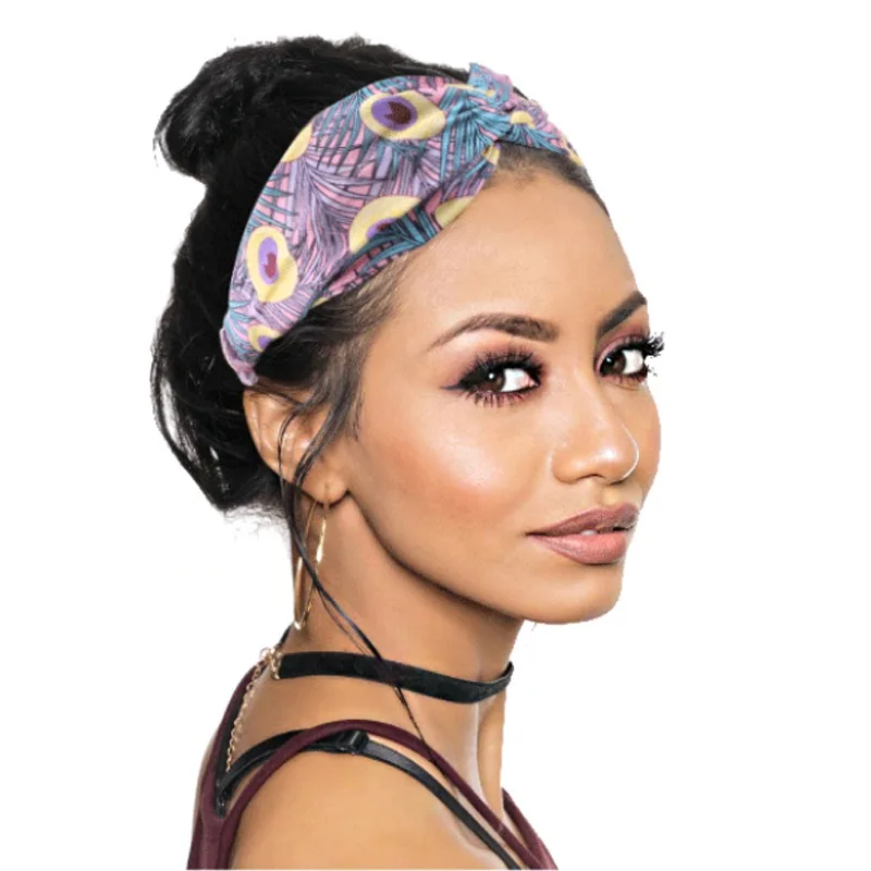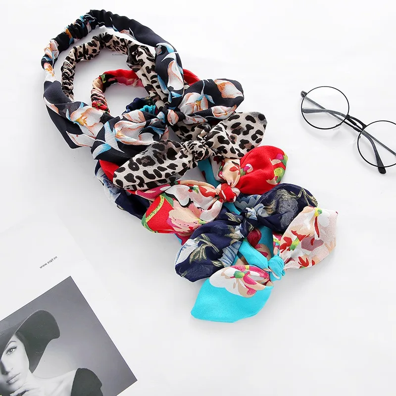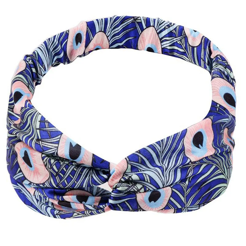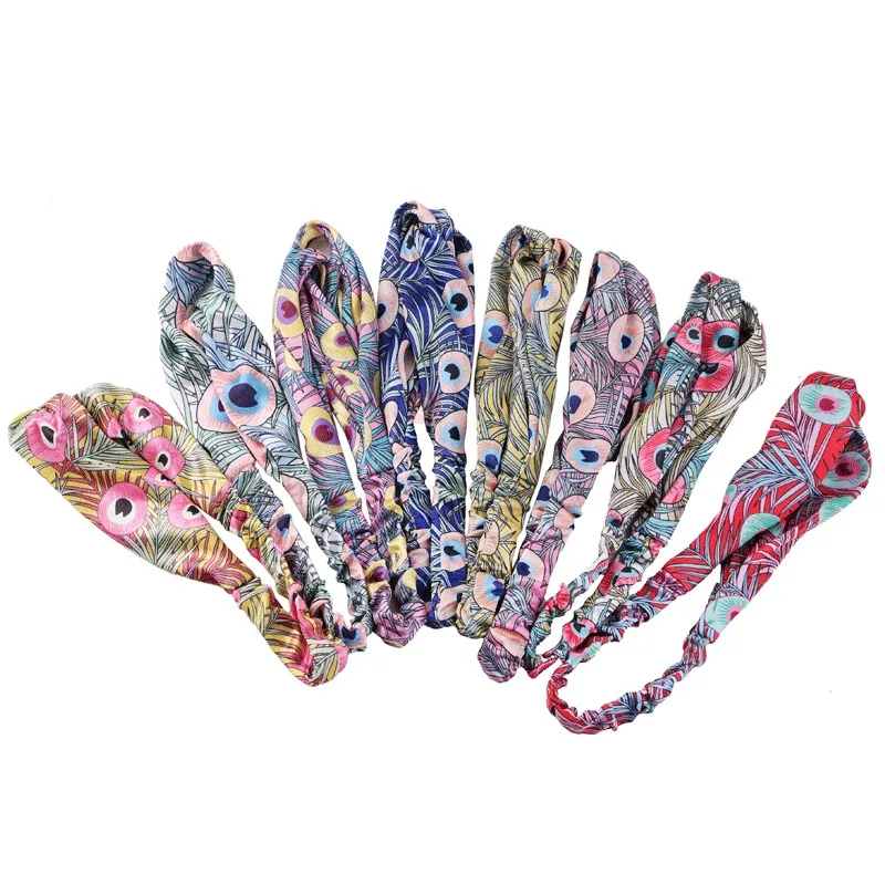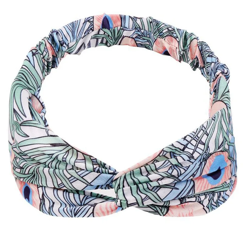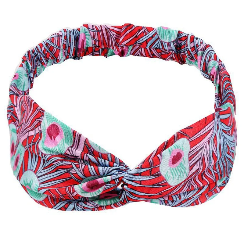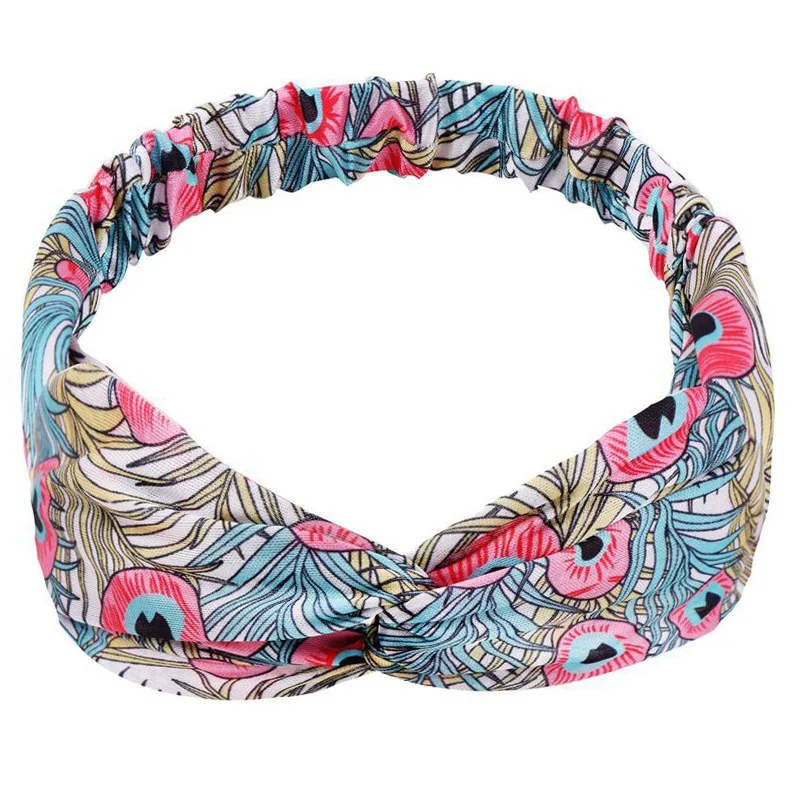 Повязка для волос в богемном стиле для девочек, винтажная эластичная лента с принтом, с перехлёстом, мягкая бандана