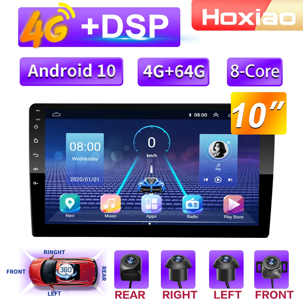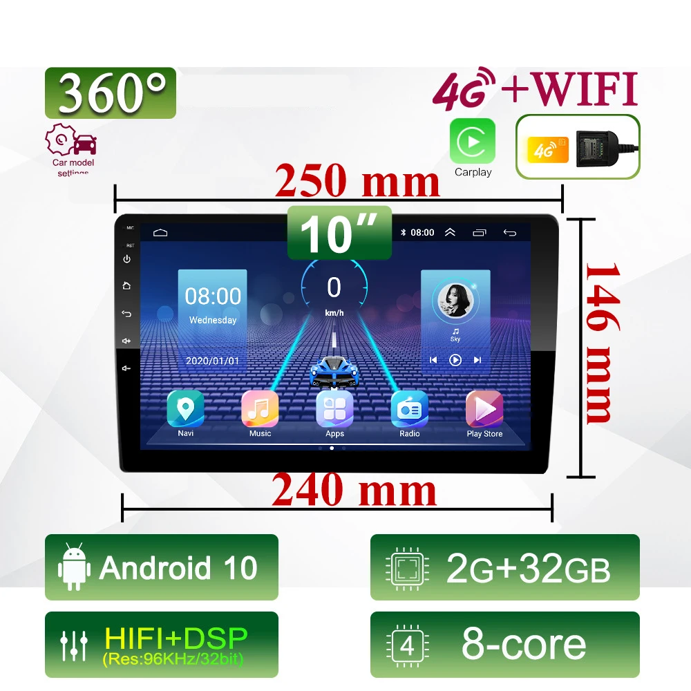 Автомагнитола 2 Din, 8 ядер, Android 10, мультимедийный видеоплеер, 10 дюймов, 360, дополнительная система, ОЗУ 4 Гб, ПЗУ 64 ГБ, GPS-навигация, аудио 2 Din