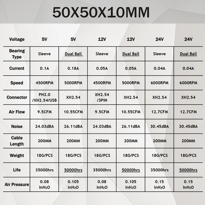 Вентилятор диаметром 50 мм, 5 В, 12 В, 24 В, 5010, 50x50x10 мм