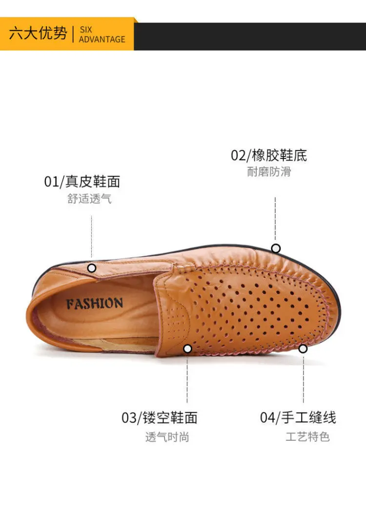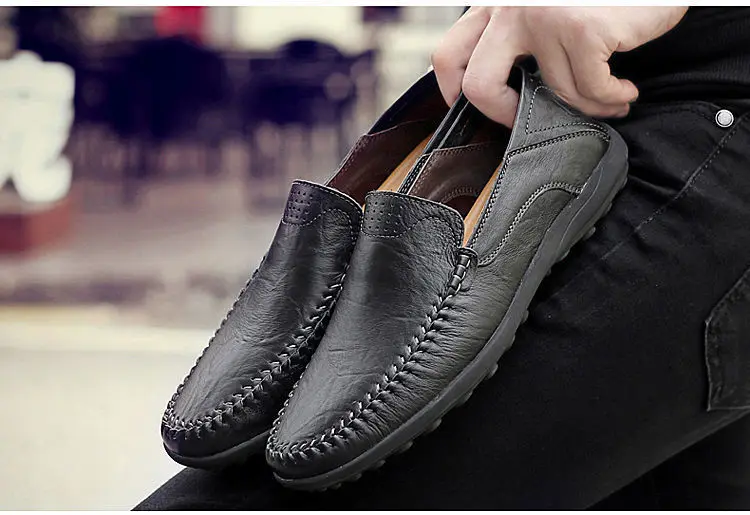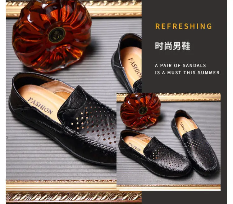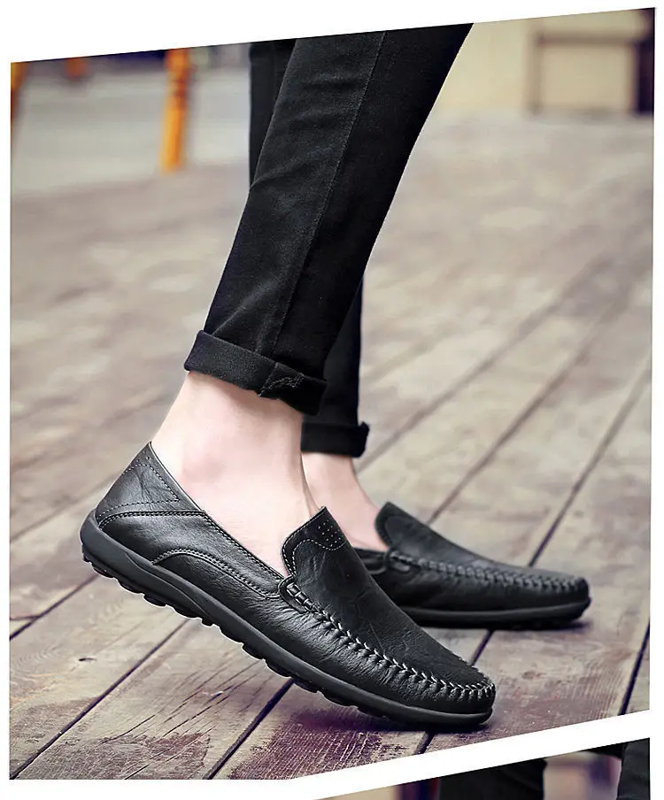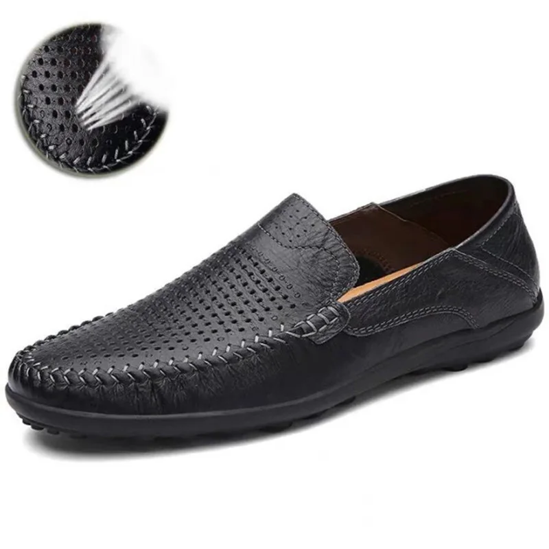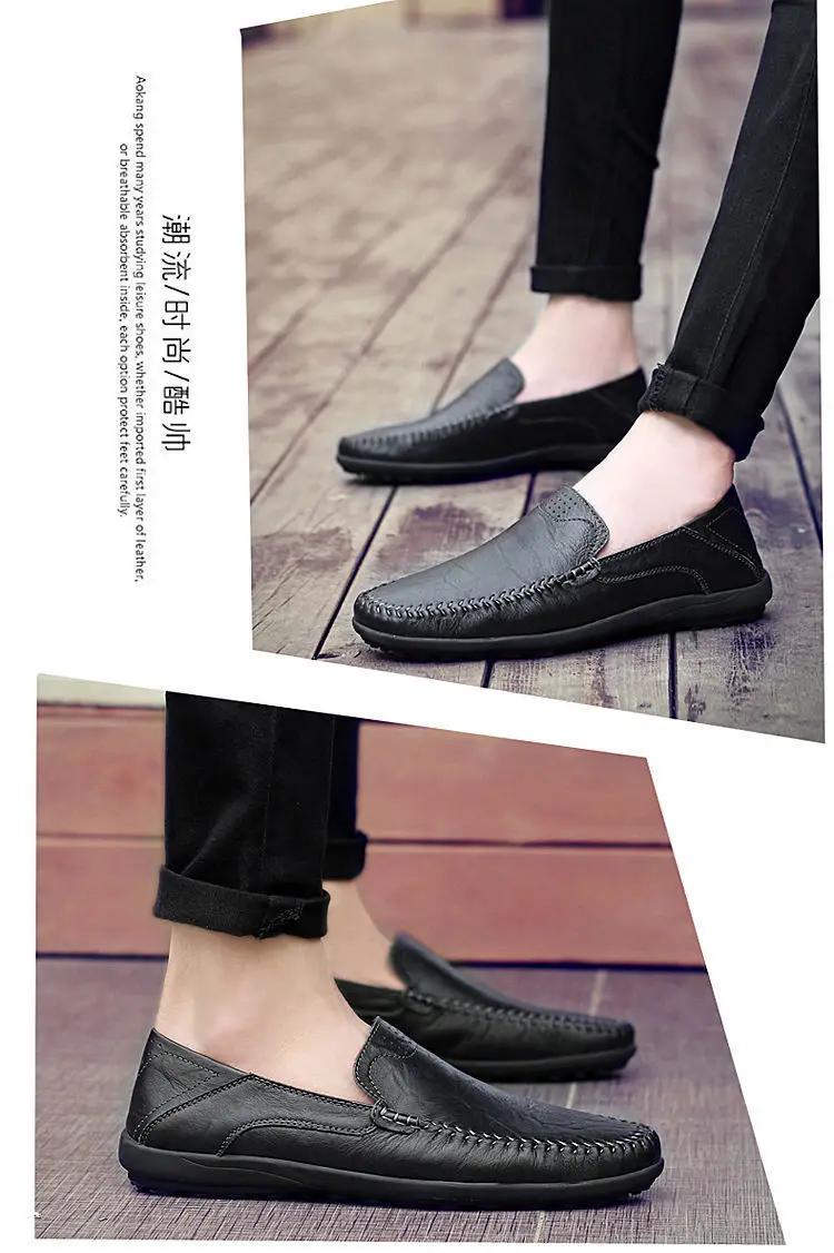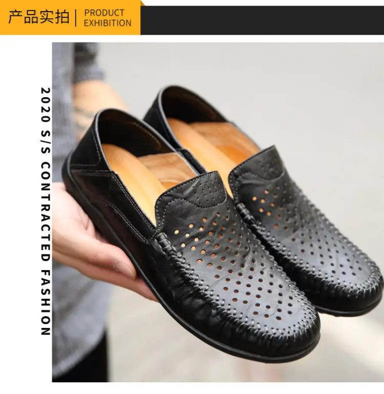 Туфли мужские из натуральной кожи, дышащие, черные, для вождения