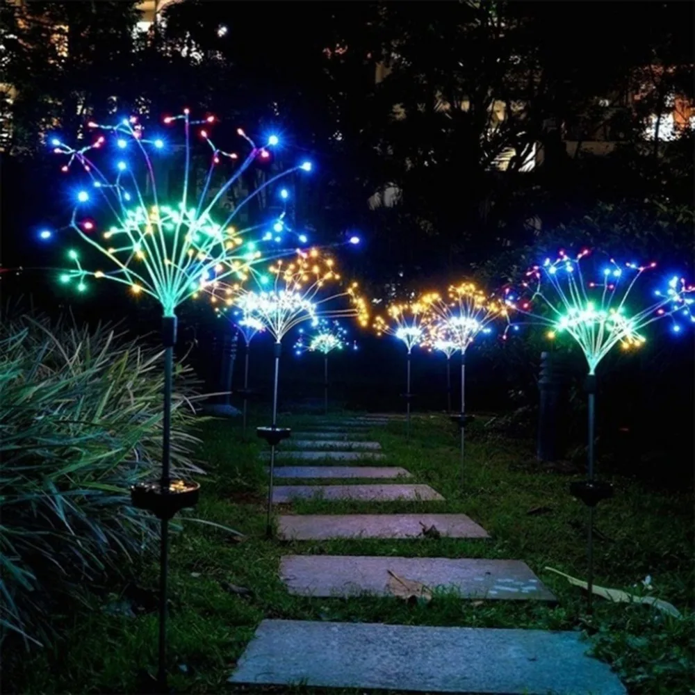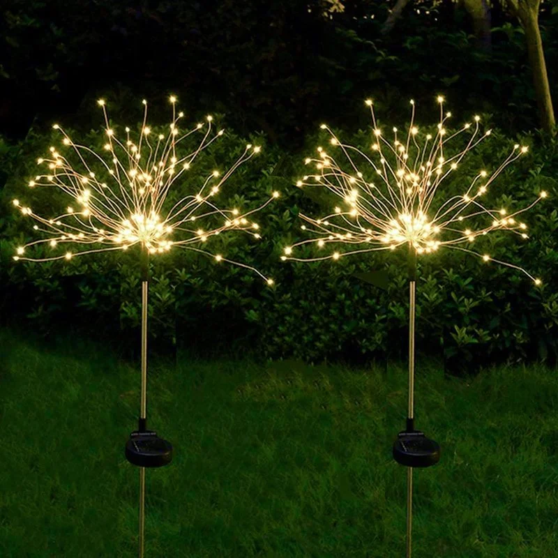 Уличные садовые фонари на солнечных батареях, 2 упаковки, 180 светодиодный ных медных проводов, фейерверк, Звездный взрыв, водонепроницаемые Ландшафтные фонари для газона, заднего двора