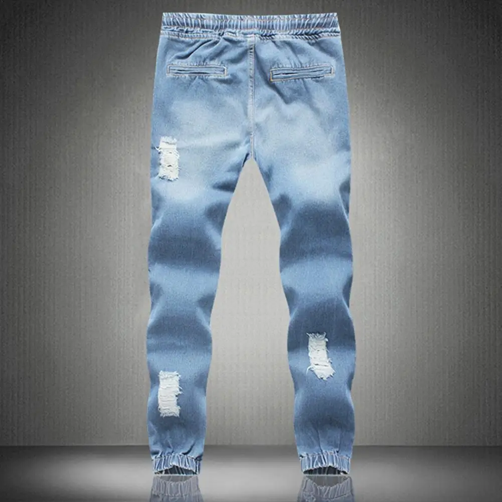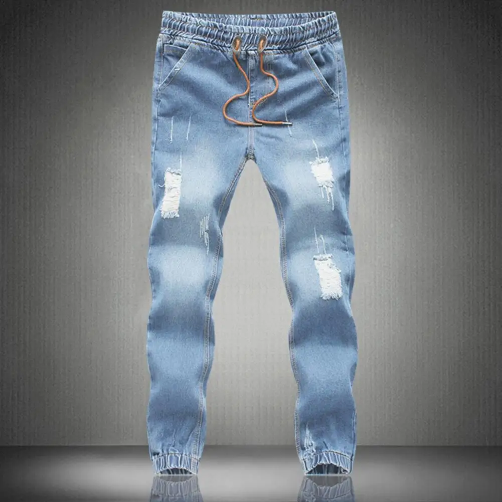 Повседневные мужские джинсовые брюки, Длинные мужские рваные джинсы скинни с дырками и карманами, синие джинсы-карандаш, мужские брюки оверсайз, мужские брюки, сы для мужчин 2021