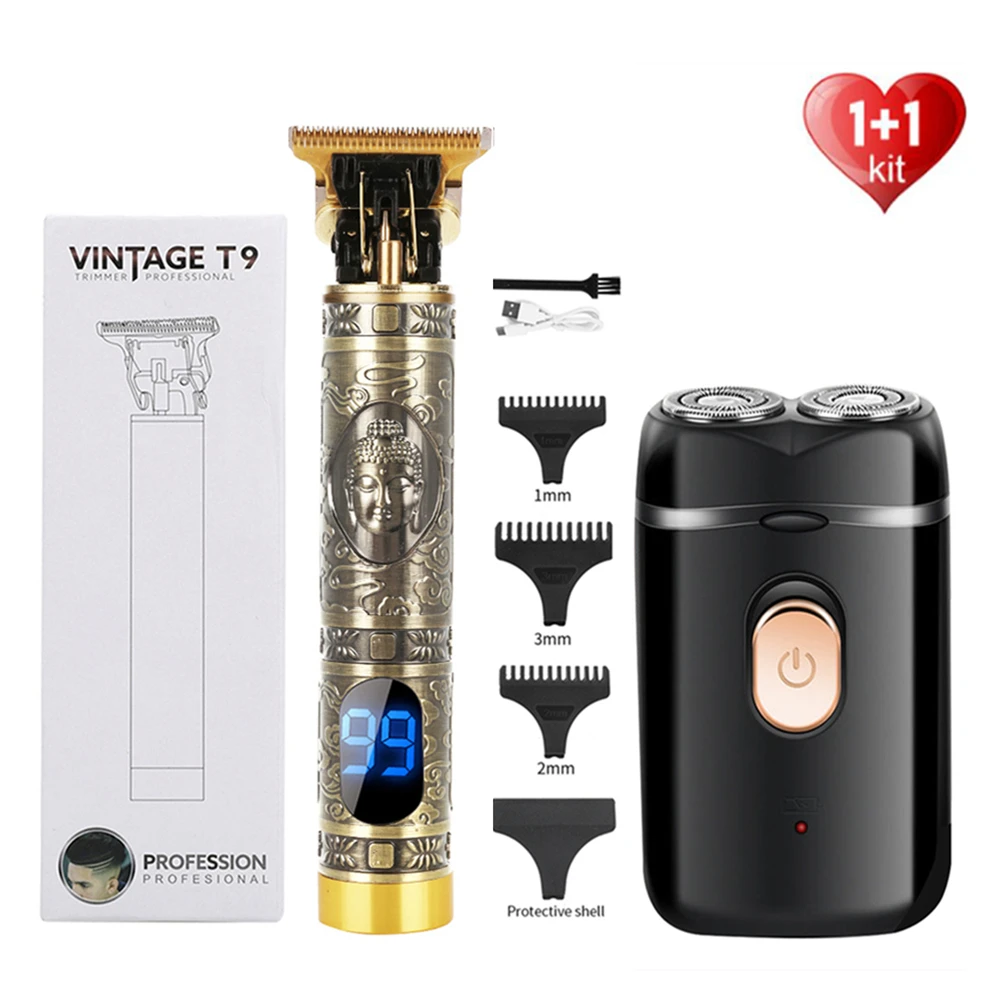 Триммер для волос + бритва, профессиональная электрическая машинка для стрижки волос, косилка, Парикмахерская, перезаряжаемая машинка для стрижки волос, бритва для бороды для мужчин