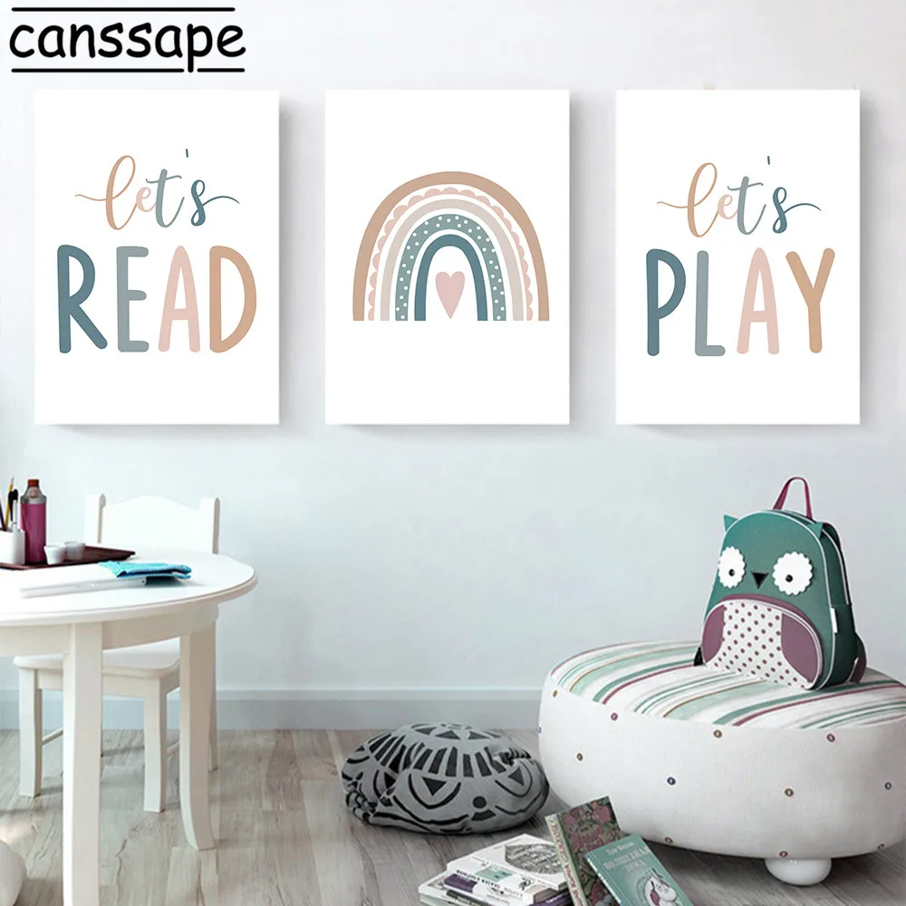 Картина на холсте для детской комнаты радужные плакаты с принтом со...