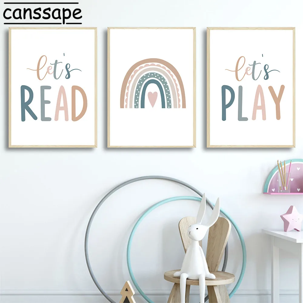 Плакаты для детской комнаты, Картина на холсте в стиле бохо, радуга...
