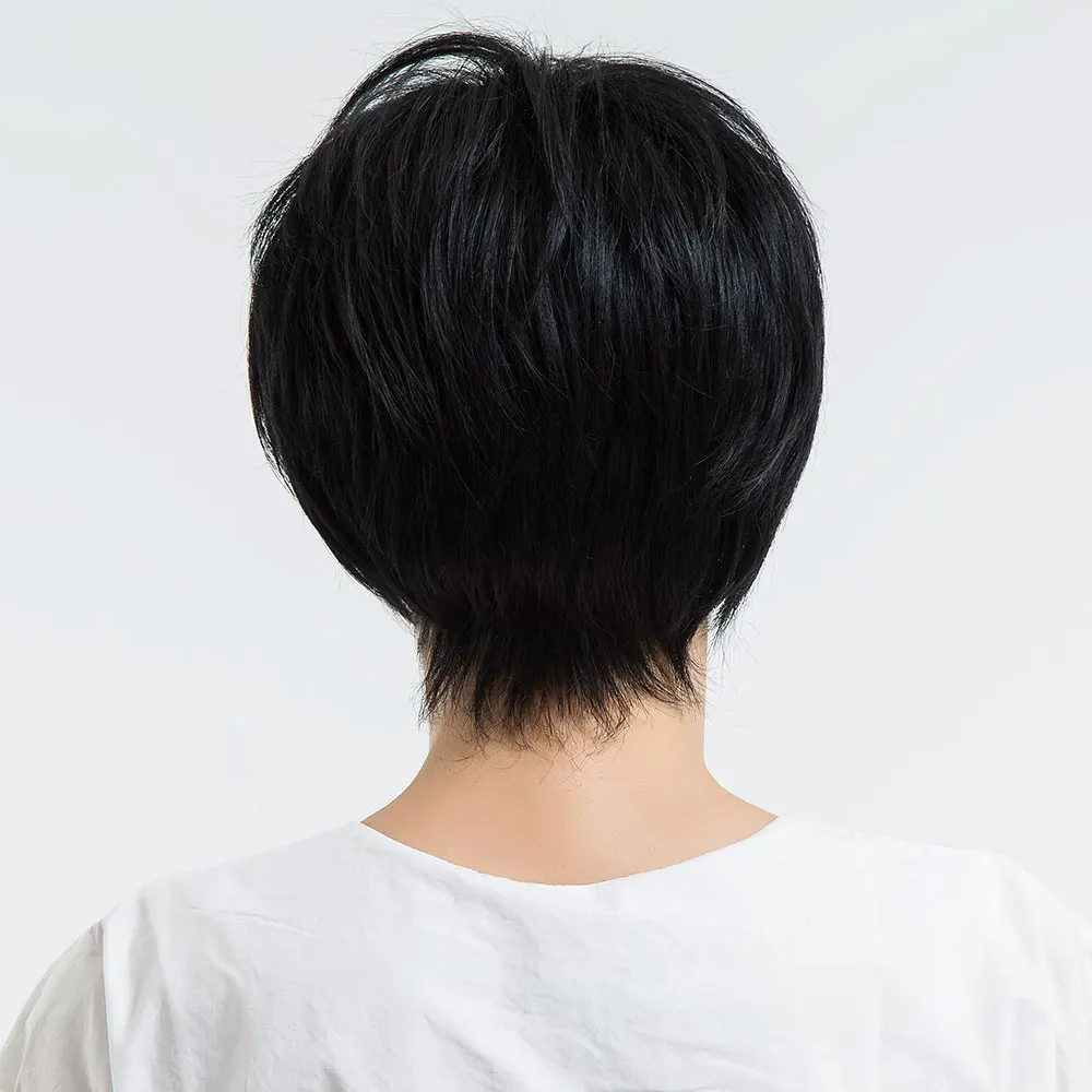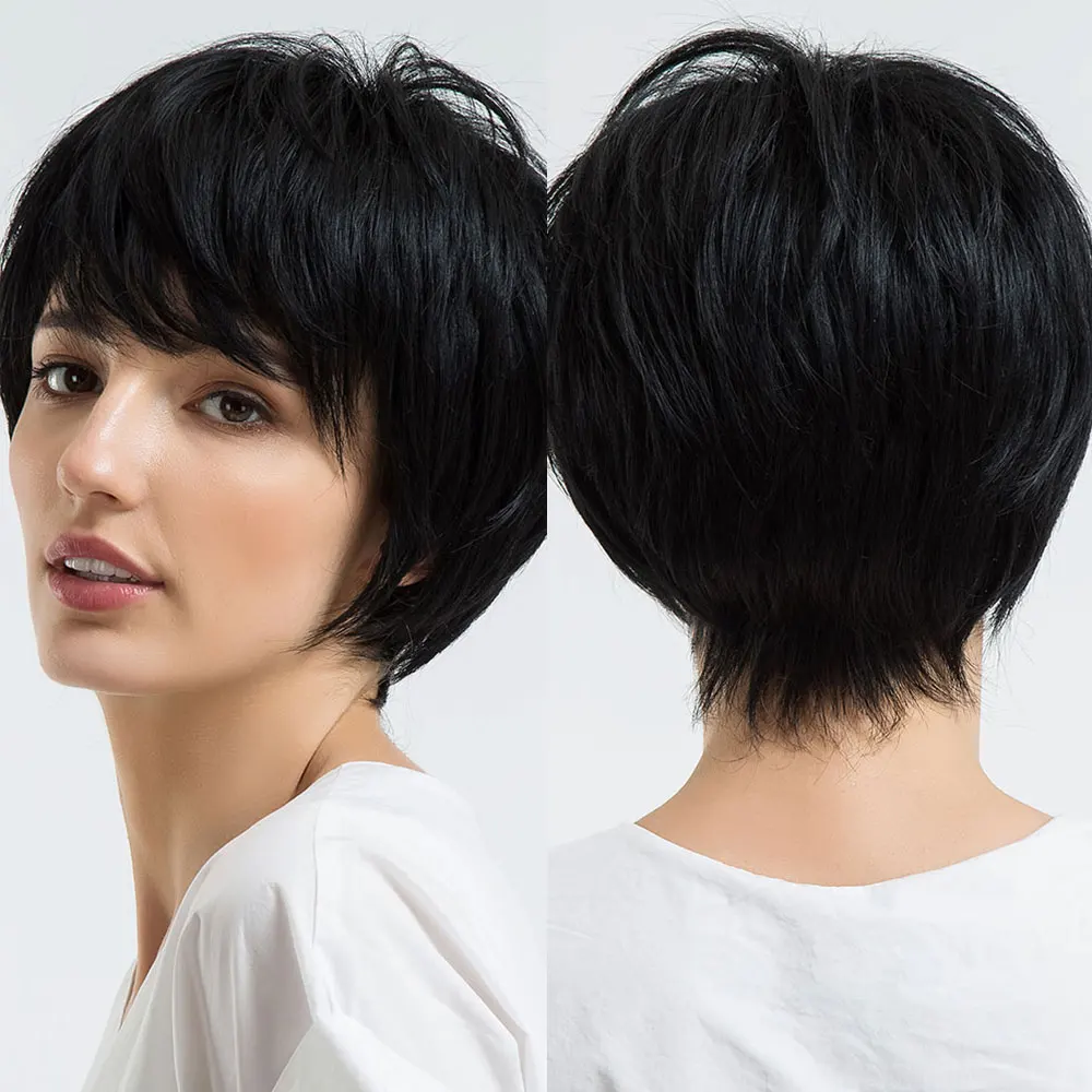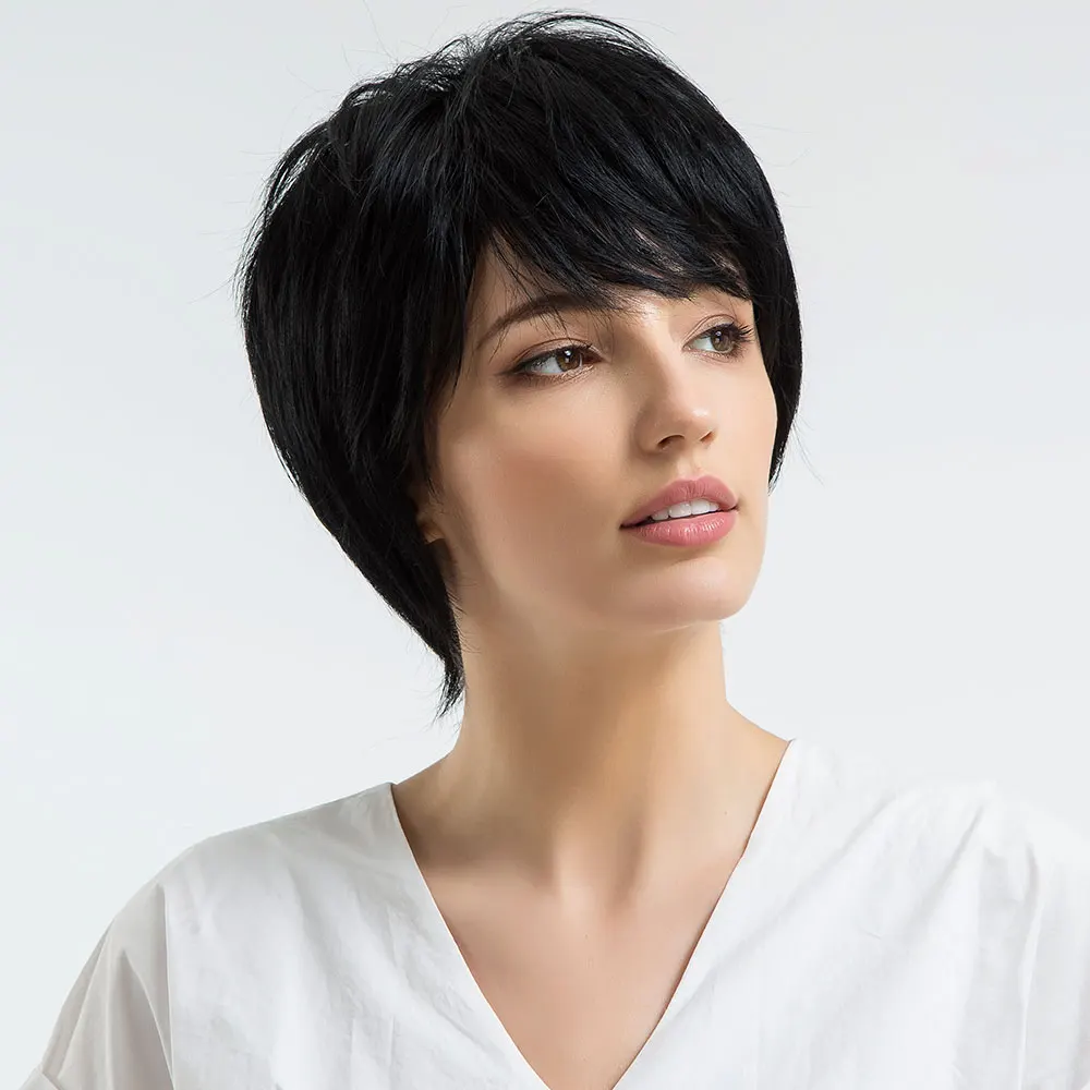 Парик для женщин ALAN EATON, термостойкий, с короткими прямыми черными синтетическими волосами, с боковой челкой