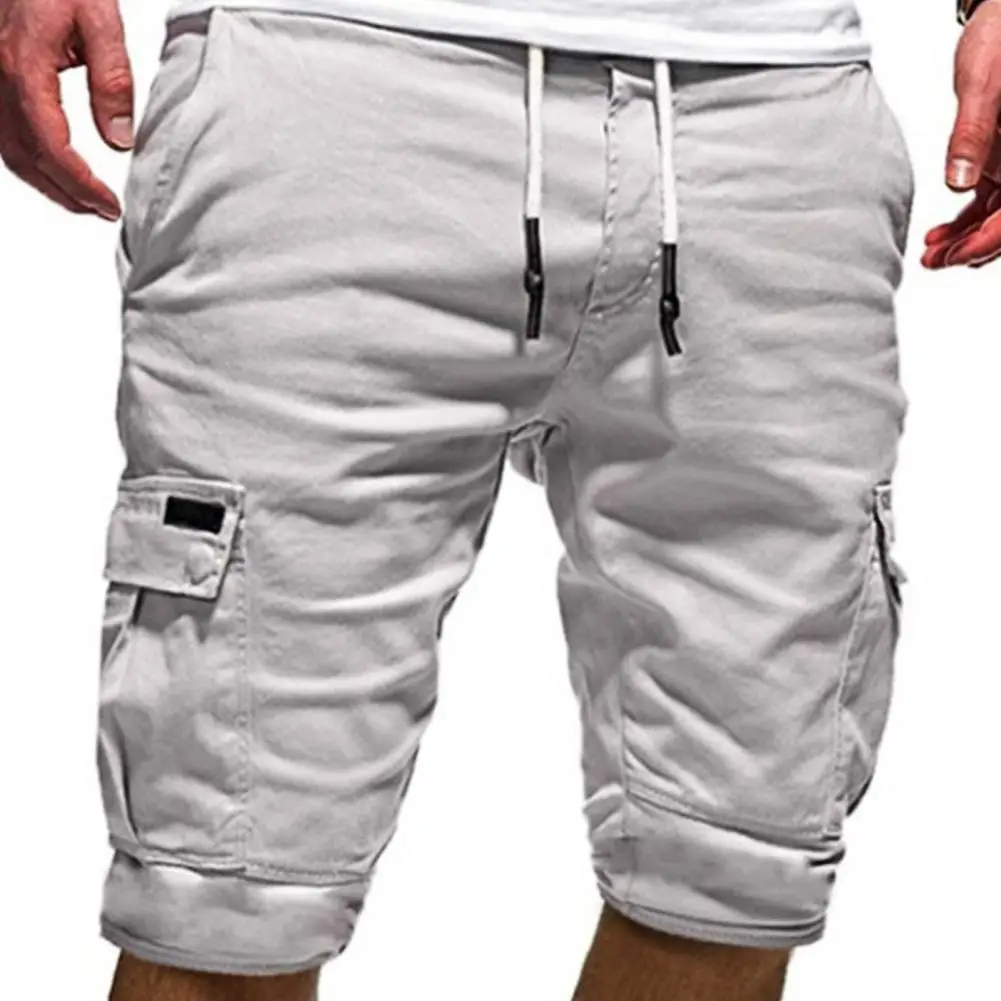 Шорты-карго мужские однотонные, повседневные свободные спортивные штаны, много карманов, со шнурком, для воркаута и бега, летние