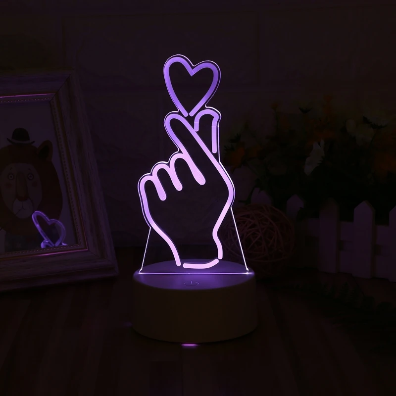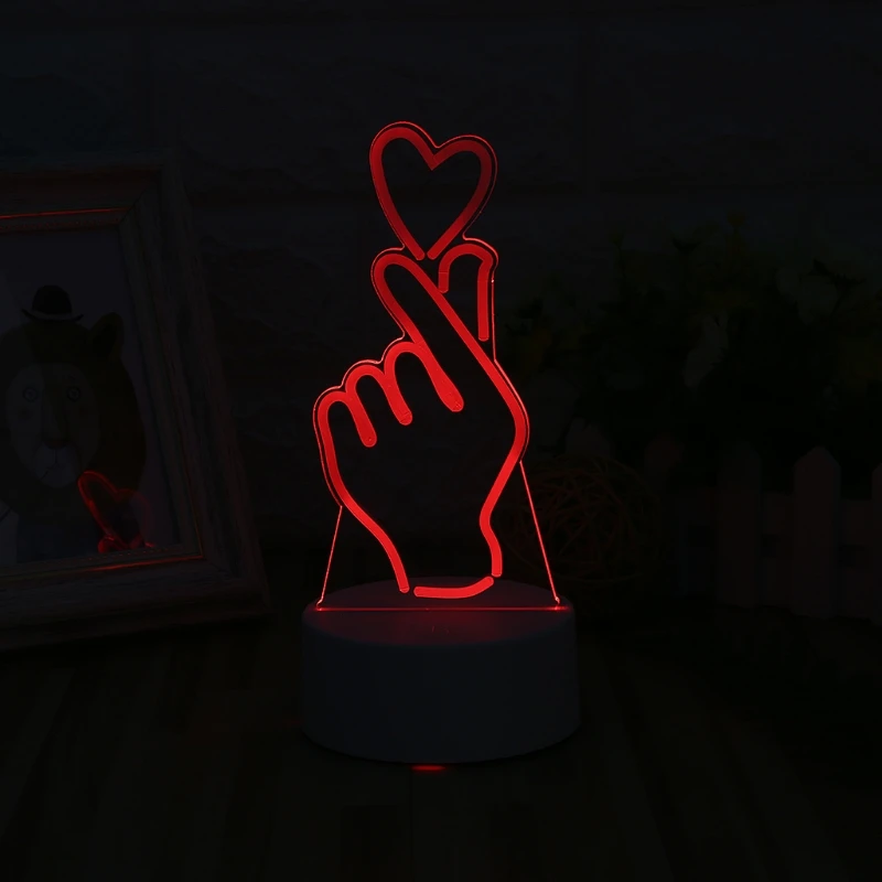 E9LD USB Новинка 7 цветов Изменение палец сердце светодиодный ночной Светильник 3D настольная лампа домашний декор