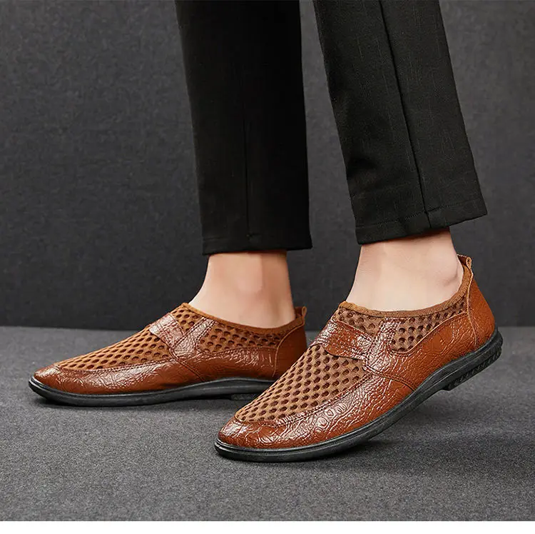 Мужские повседневные туфли из натуральной кожи, коричневые дышащие ...