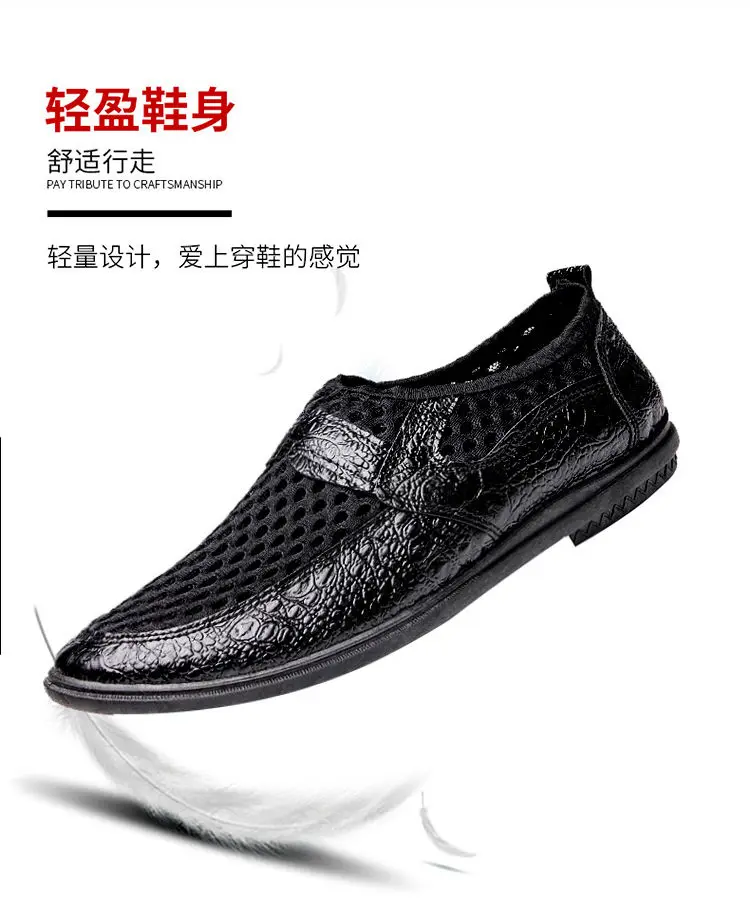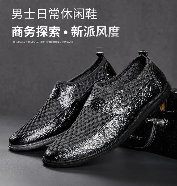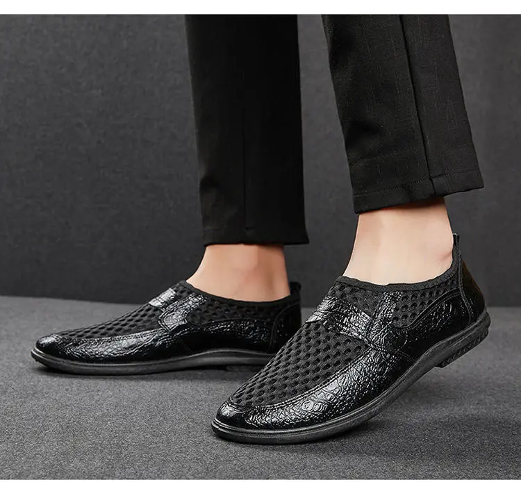 Туфли мужские из натуральной кожи, дышащие, черные, для вождения