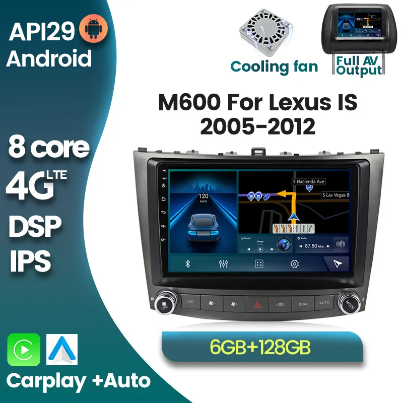 Автомагнитола для Lexus IS250 IS300 IS200 IS220 IS350 128-2005 с GPS-навигацией, стерео, ОЗУ 6 ГБ, ПЗУ 2012 ГБ, Android 10
