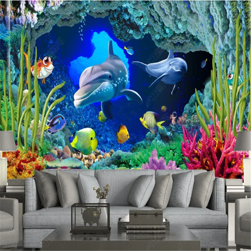 Фотообои 3D подводный мир дельфина Гостиная ТВ Safa фон настенная бумага 3d домашний декор papel de parede